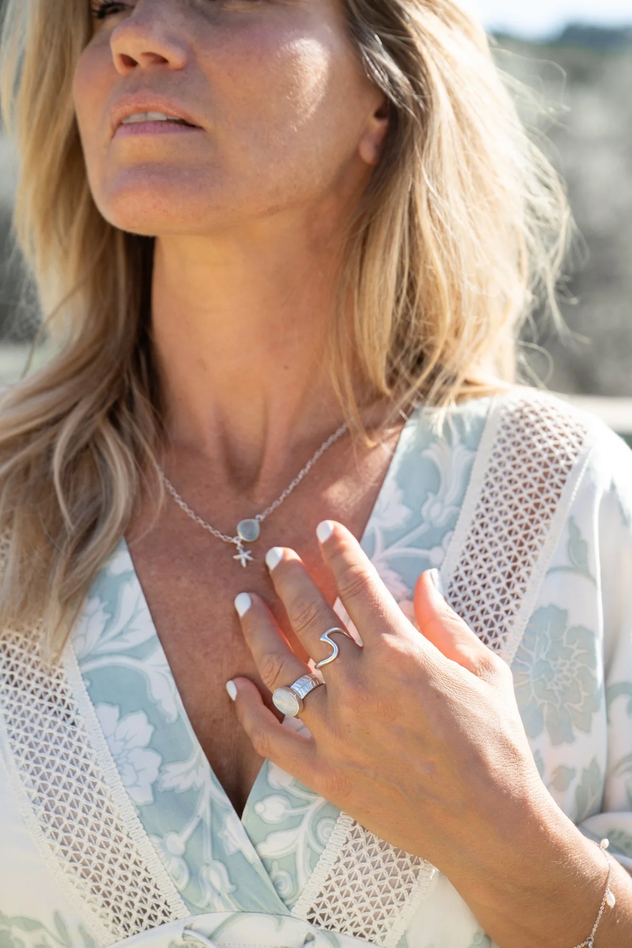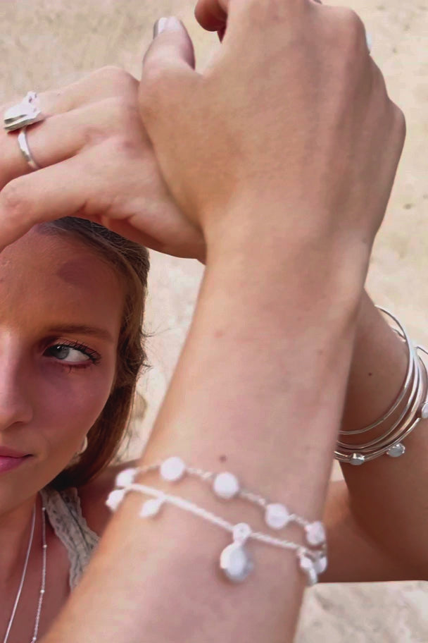 Esta pieza de joyería está hecha de latón y acabada con una capa de auténtica plata de ley 925. Esto le da el brillo de la plata auténtica, a la vez que la mantiene ligera y accesible. Un sofisticado toque final para tu look. Úsala con cuidado: evita el agua, los perfumes y los detergentes para que la joya conserve su mejor aspecto.
