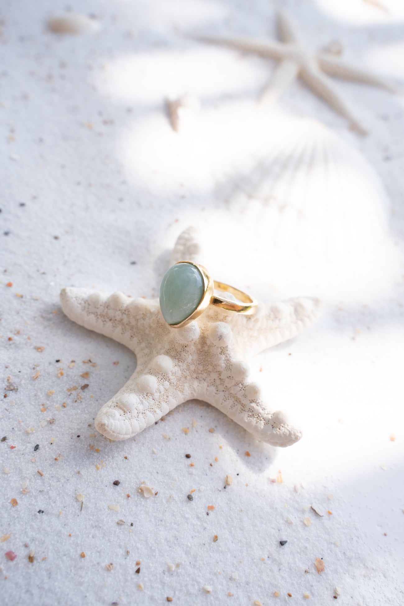 Product gegevens: Latón recubierto de oro auténtico (18K), con una piedra natural turquesa Amazonita. Este anillo se entrega en un bonito estuche de regaloContenido de la pestaña plegable