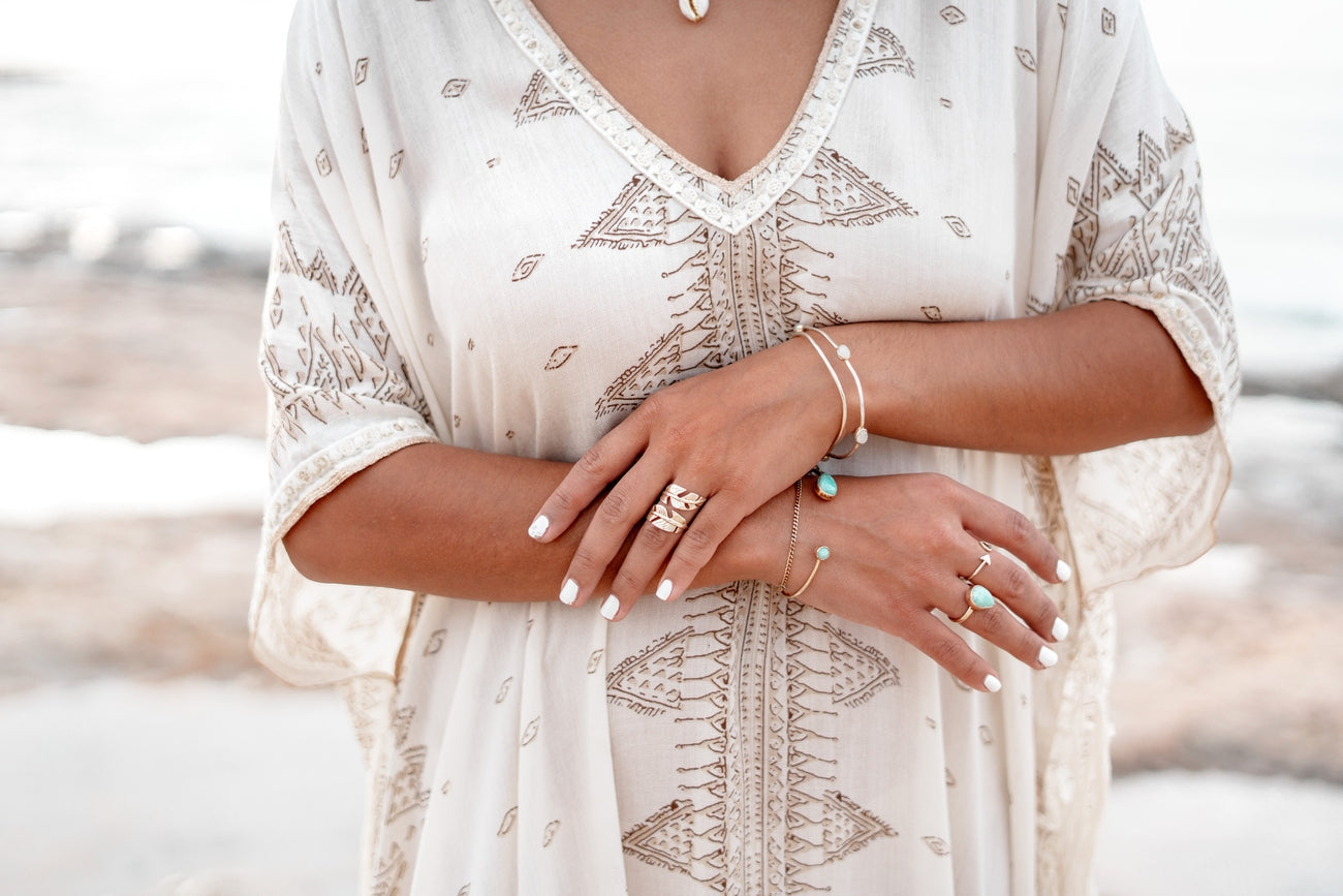 Esta joya tiene una base de latón macizo y está acabada con una capa de oro auténtico. La combinación crea un brillo cálido y un aspecto lujoso. Úsala con cuidado -evita el agua, los perfumes y los detergentes- y tu joya conservará su belleza durante mucho tiempo.