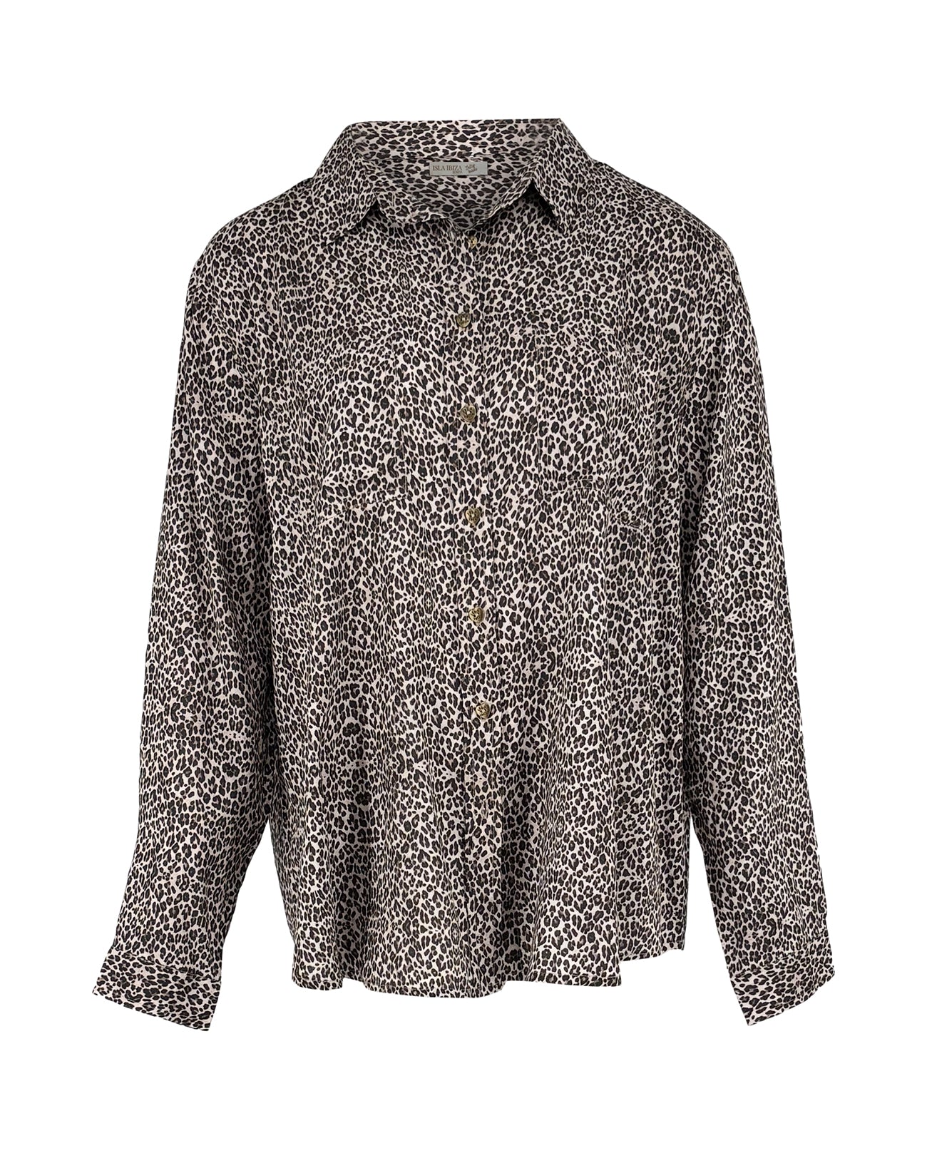Product gegevens: Soepelvallende blouse met kraag en halve knoopsluiting, met leuke luipaard printContenido de la pestaña plegable