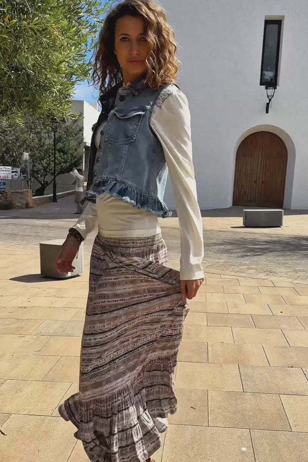 Este chaleco vaquero Ruffled de Isla Ibiza en azul vaquero oscuro respira vibraciones ibicencas. Chaleco vaquero, con cuello y botones y un llamativo volante en la parte inferior Pídelo rápidamente y disfruta del estilo de vida bohemio todos los días.