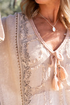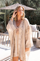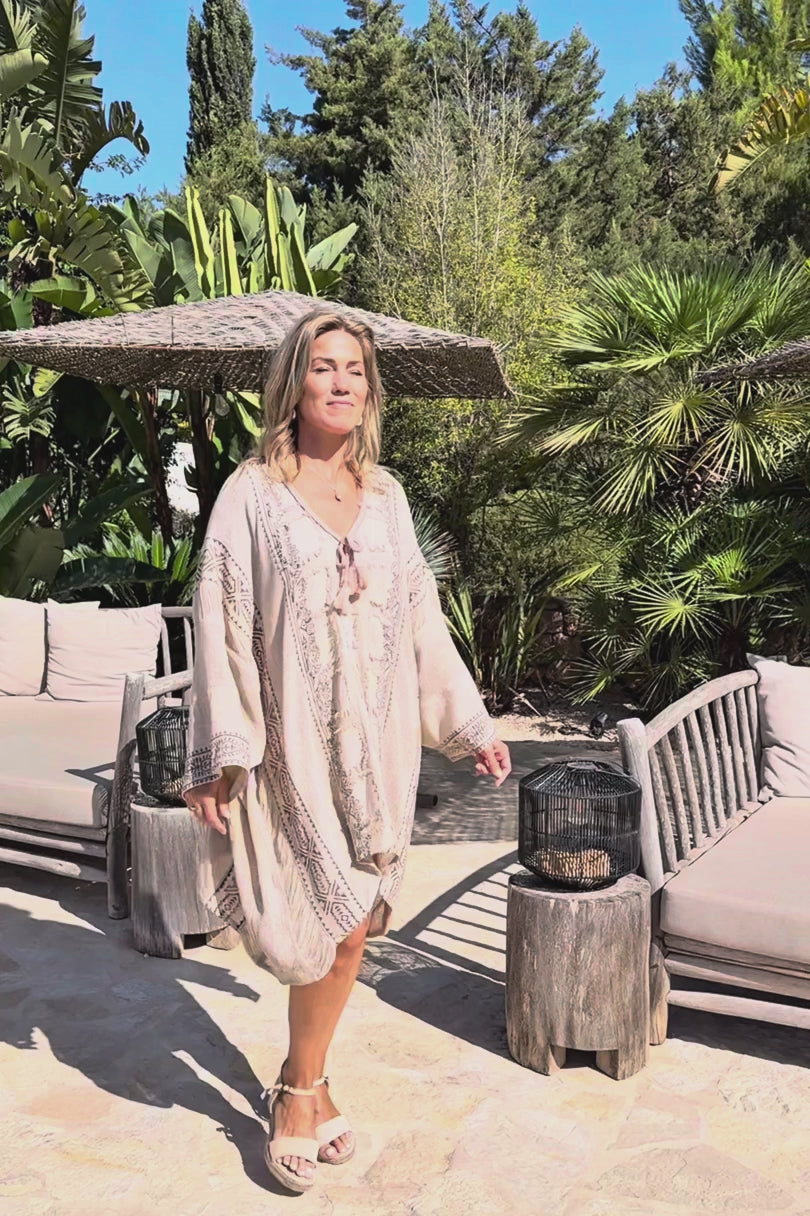El caftán corto Rhea Vedra pertenece a la colección Resort Escape de la moda ibicenca. Este caftán corto está hecho para los días soleados y las largas veladas. El tejido es suave y transpirable sobre la piel. Como resultado, llevarás Rhea Vedra cómodamente cuando haga calor, junto a la piscina o de vacaciones. El look es femenino, relajado y marcadamente boho.