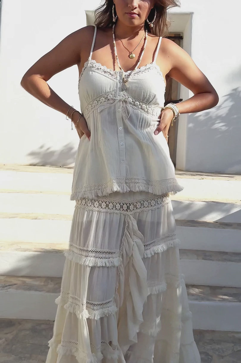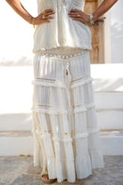 Por la noche, combina la Falda Gitana Marlota Ellis con botas o tacones y un kimono corto o una americana. Así, de un plumazo, tienes un conjunto adecuado para una cena, unas copas o un evento veraniego. Si buscas una falda de encaje que puedas llevar de la playa a la cena, esta falda gitana es una fuerte incorporación a tu armario.