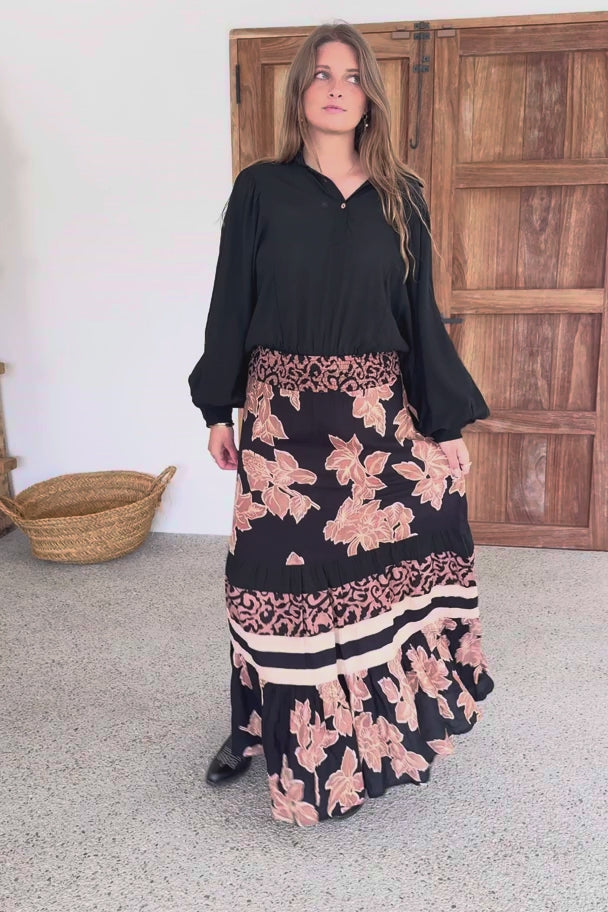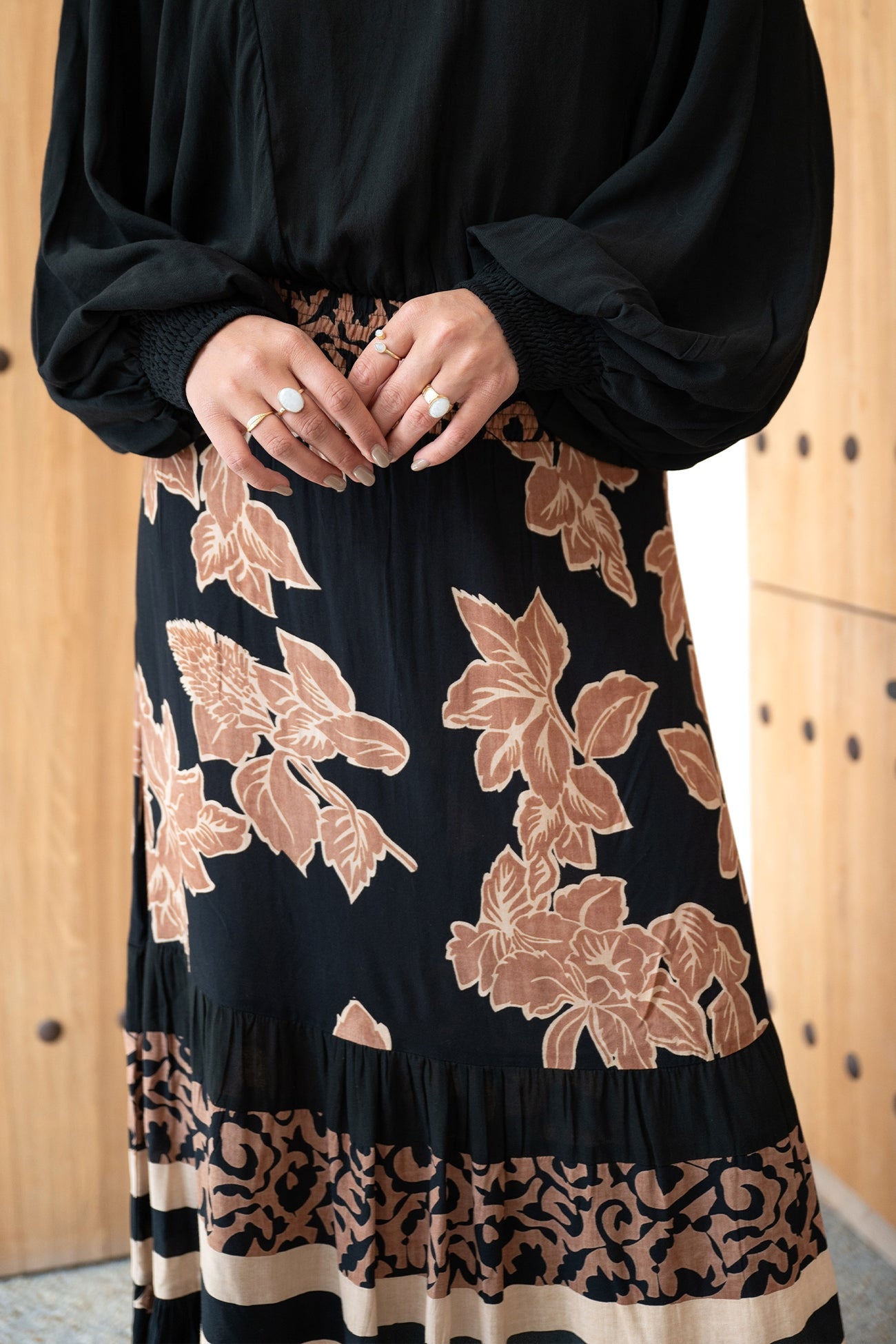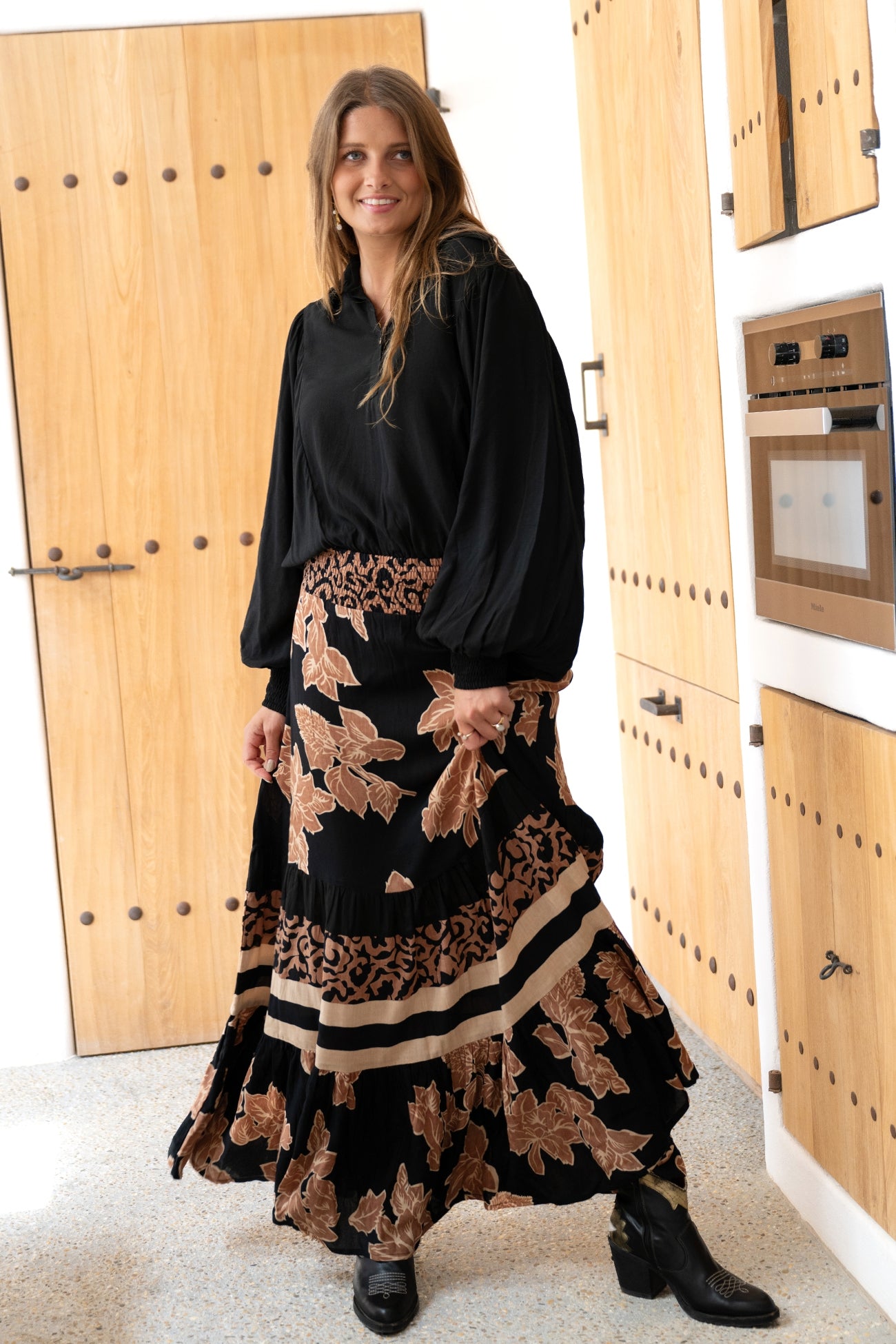 Product gegevens: Lange rok met stroken en elastiek in de tailleContenido de la pestaña plegable