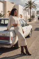 Esta falda envolvente de punto Laura de MOOST Wanted en color blanco roto desprende vibraciones ibicencas. Falda envolvente de ganchillo, combina bien con el top a juego Perfecta para combinar con chanclas, un top básico o una blusa ligera. Que siga llegando el verano: estás preparada para él.