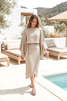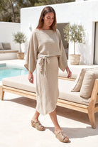 Por último, la falda Fanti Auralea Beige es una prenda que te pondrás una y otra vez. Esta falda ibicenca combina sencillez, comodidad y estilo atemporal.
