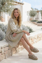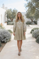 Crea tu look veraniego definitivo con la Túnica Elena Bordado Arena en color arena. Sin hombros, adorno de volantes en el escote, decorada con bordados brillantes, elástico en los puños El tejido vaporoso se siente suave en tu piel. Compra ahora en ibizamode y brilla con estilo este verano.