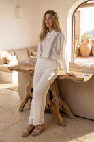 ¿Buscas una prenda con aire bohemio? Entonces el pantalón Tonia Scorva Blanco de ibzmode es lo que buscas. Diseño estampado a mano, tiene bolsillos laterales y cintura elástica El material natural proporciona una sensación de ligereza. Añade este imprescindible a tu armario de verano.