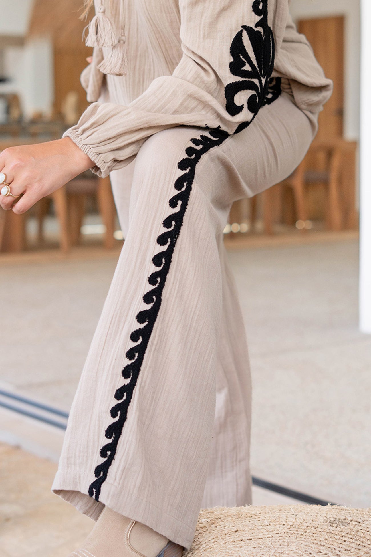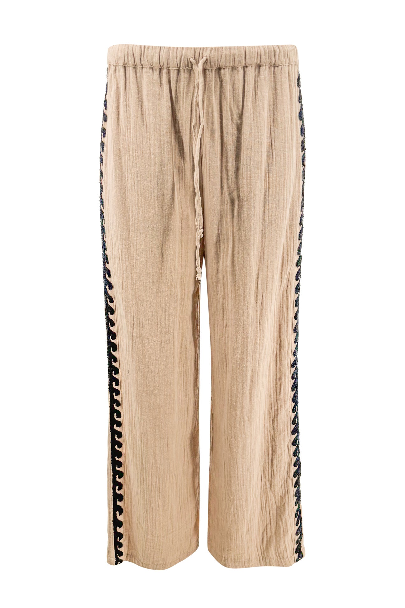 Product gegevens: Pantalon bezet met sierband op de zijkanten, heeft steekzakken, elastische band in de heupen en kan worden gestriktContenido de la pestaña plegable