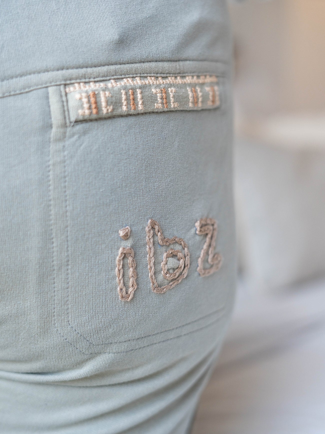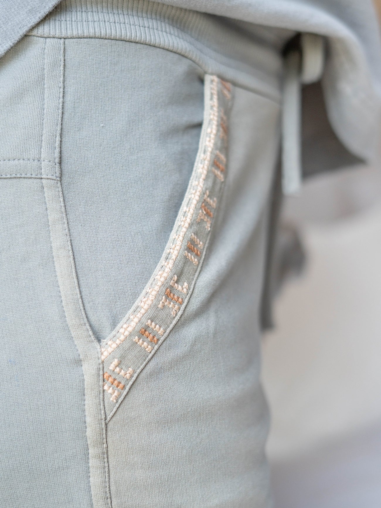 Product gegevens: Joggingbroek met rechte pijpen en borduursels langs de zakkenContenido de la pestaña plegable