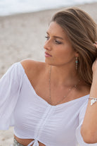 Esta pieza de joyería está hecha de latón y acabada con una capa de auténtica plata de ley 925. Esto le da el brillo de la plata auténtica, a la vez que la mantiene ligera y accesible. Un sofisticado toque final para tu look. Úsala con cuidado: evita el agua, los perfumes y los detergentes para que la joya conserve su mejor aspecto.