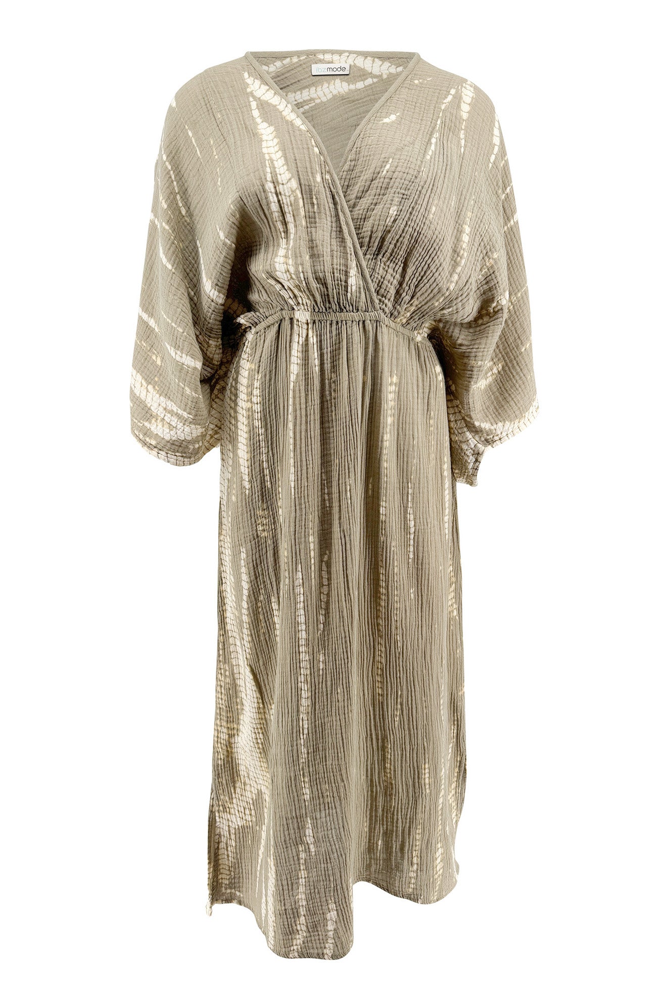 El Vestido Malia Sera forma parte de la colección Sand Stories. Este vestido teñido irradia tranquilidad, suavidad y elegancia natural. El estampado orgánico tie dye en gris topo y marfil crea un sofisticado look de resort. Como resultado, este vestido resulta instantáneamente apropiado para los días de vacaciones relajados y las largas noches de verano.