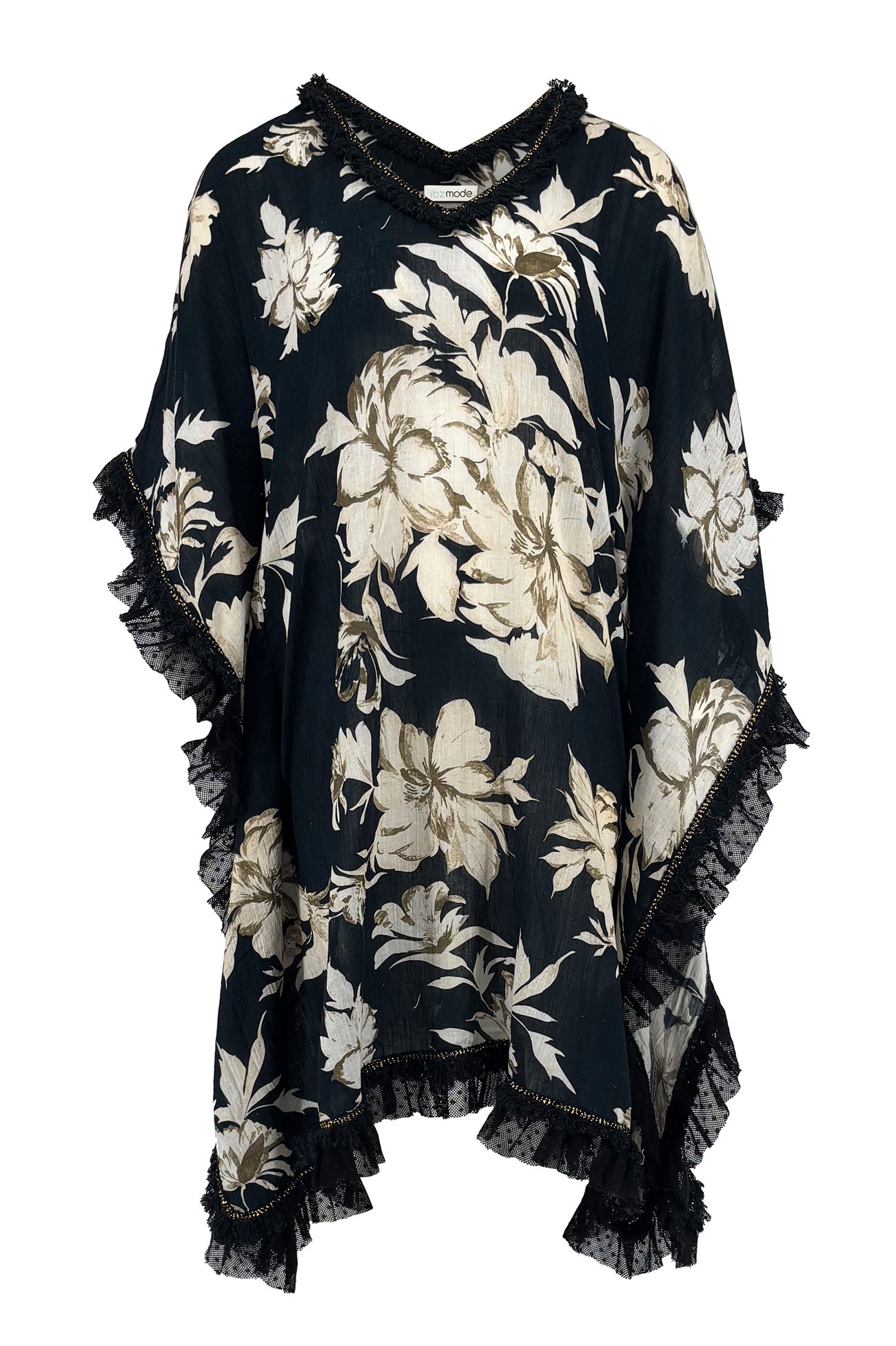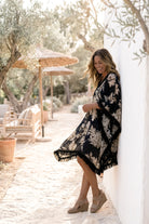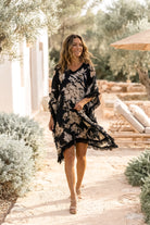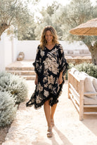 El Caftán Javina Coralia Negro es un elegante caftán de mujer con estampado floral de la colección Bohemian Bloom. La base oscura combinada con el romántico estampado floral confiere a este caftán un aspecto poderoso y femenino.