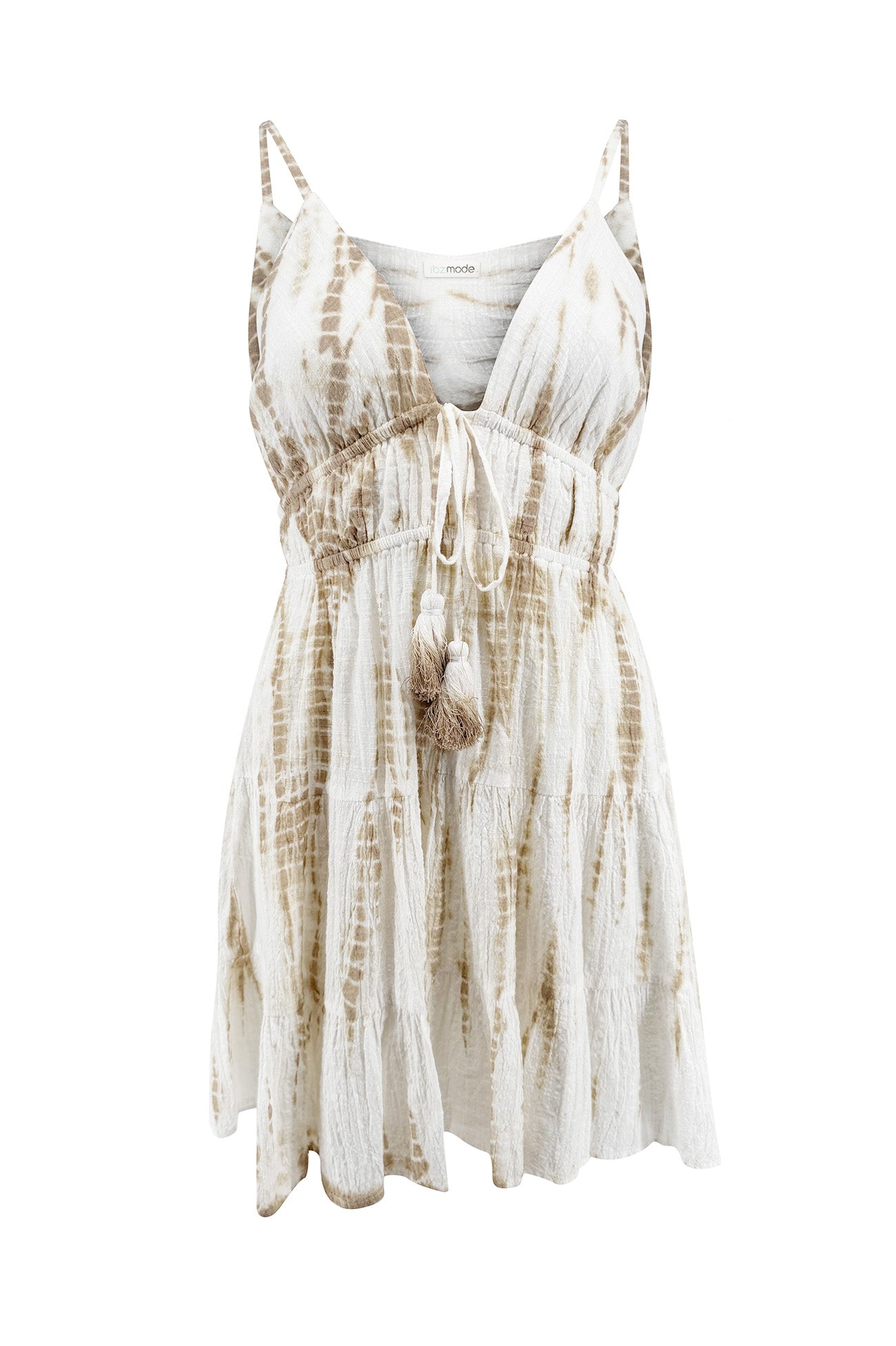 El Vestido Corto Camila Sera forma parte de la colección Sand Stories. Este vestido tie dye está diseñado para los días relajados de verano con un lujoso aire de resort. La combinación de topo suave y marfil fresco crea un aspecto tranquilo. Como resultado, este vestido transmite al instante una sensación de ligereza, naturalidad y feminidad.
