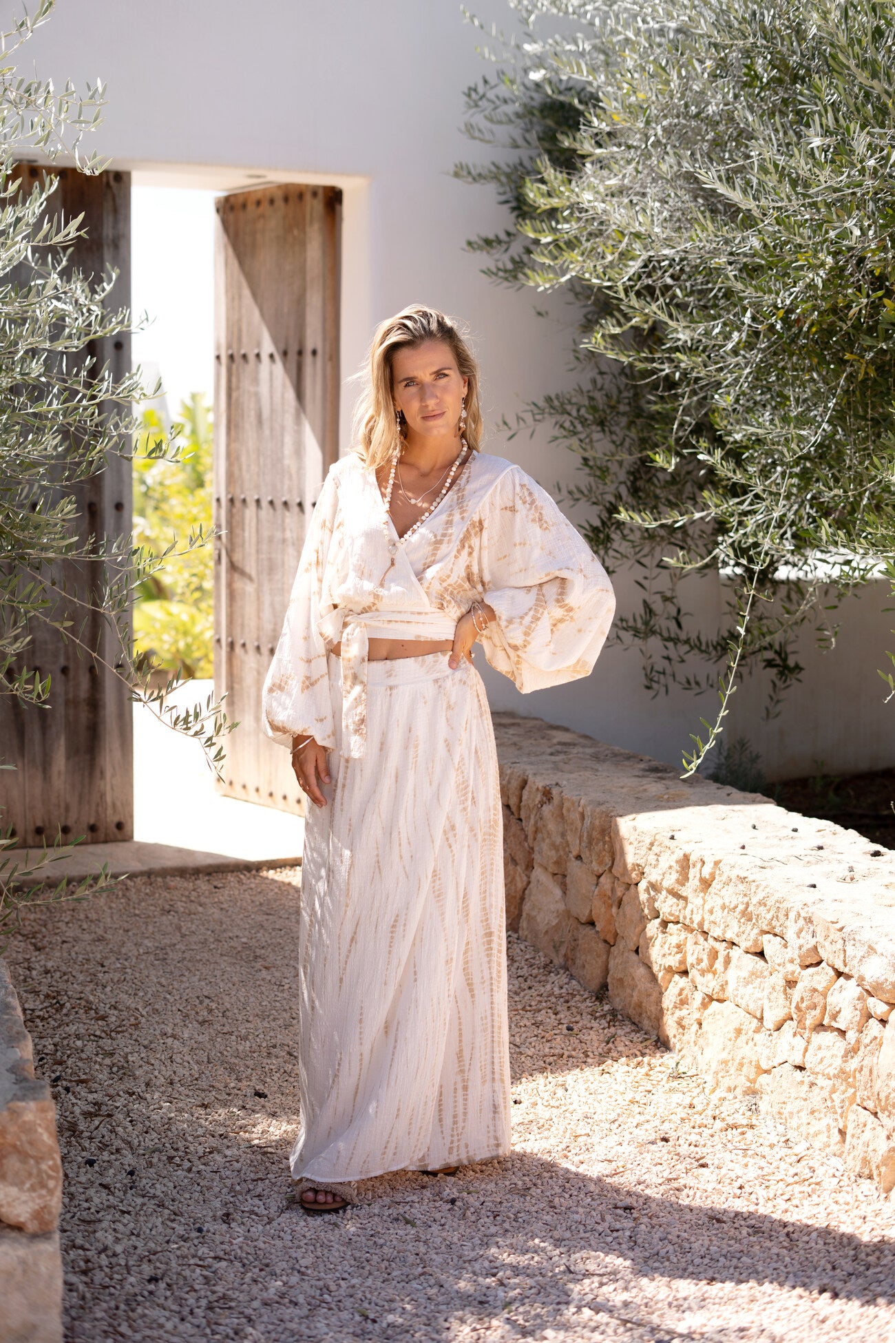 Por último, la Falda Manti Sera es una prenda esencial para tu maleta de vacaciones. Gracias a su algodón transpirable, su atemporal estampado tie-dye y su cómodo ajuste, esta falda de algodón siempre sienta bien. Ligera, femenina y perfectamente equilibrada con ese reconocible aire ibicenco.