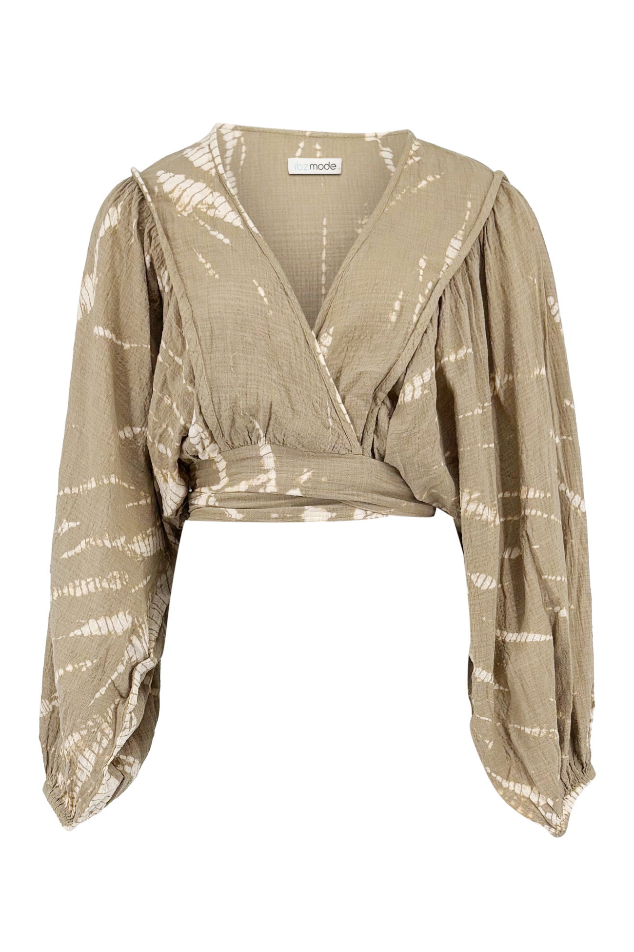 Además, el corte envolvente realza sutilmente la silueta. El top se ajusta bien sin apretar. Al mismo tiempo, el diseño da suficiente libertad de movimiento. Esto hace que el look sea aireado y relajado. Eso hace que este top tie dye sea adecuado tanto para llevar encima del bikini como para una comida veraniega.