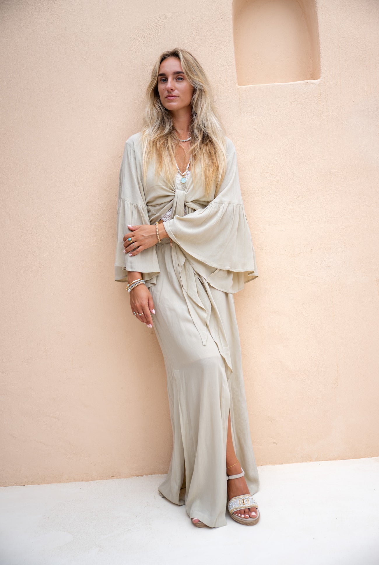 Ropa de estilo ibicenco: Sueña con el sol, la libertad y las vibraciones boho con nuestra ropa de estilo ibicenco. En Ibiza Fashion tenemos de todo, desde maxivestidos vaporosos y tops románticos hasta bolsos de piel con flecos y botas de suave ante: este estilo rezuma espíritu veraniego. El look ibicenco se originó en los años 60, cuando los hippies trajeron a la isla influencias de culturas lejanas. Estampados exóticos, bordados hechos a mano y joyas místicas inspiraron a diseñadores de moda de todo el mundo. Hoy, este estilo libre sigue vivo y coleando. En Ibiza fashion encontrarás más de 75 marcas únicas que enriquecerán tu armario con un toque bohemio. Piensa en Moost Wanted, Hot Lava y Jaase: marcas que te harán sentir como si estuvieras en Ibiza cada día. Ya sea verano o invierno: con el estilismo adecuado, puedes llevar el estilo ibicenco todo el año.