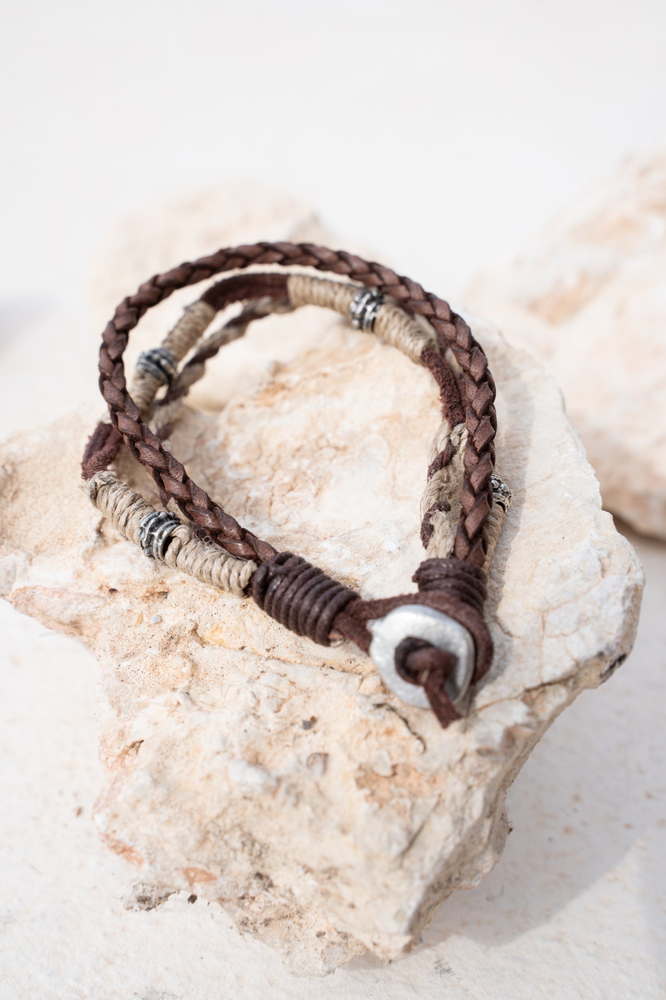 Product gegevens: Stoere armband gemaakt van Leer, Zink en Jute. Wordt geleverd in een mooie jute verpakking. Draag dit bij voorkeur niet in water of onder de douche!Contenido de la pestaña plegable