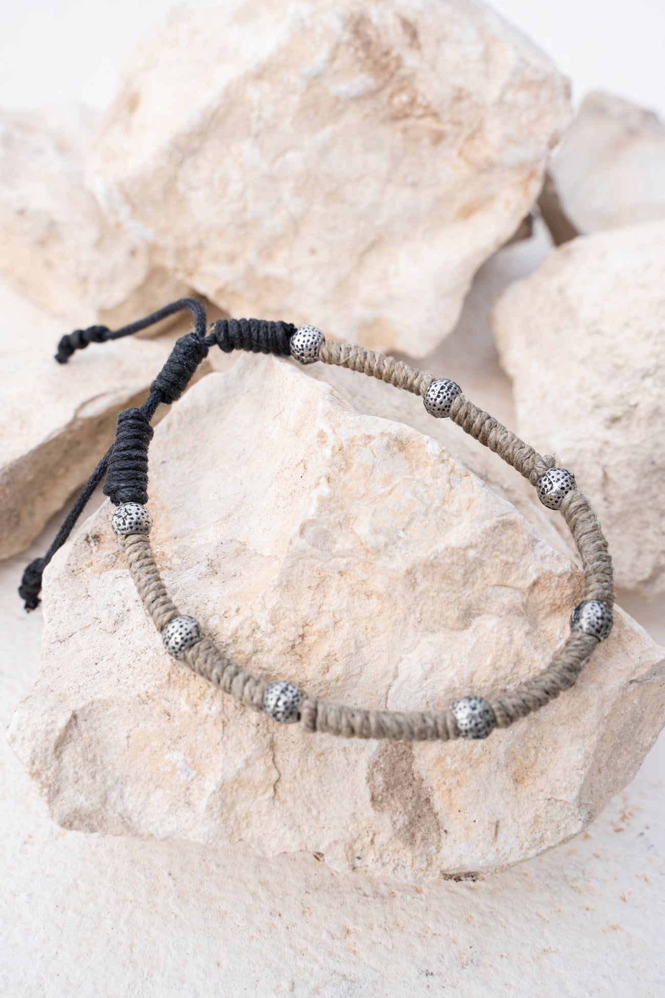 Product gegevens: Verstelbare armband gemaakt van Leer, Zink en Jute. Wordt geleverd in een mooie jute verpakking. Draag dit bij voorkeur niet in water of onder de douche!Contenido de la pestaña plegable