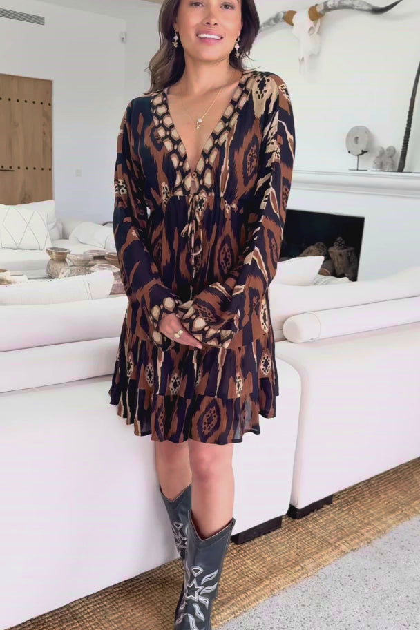 Product gegevens: Korte jurk van fladderige stof met wijde mouwenContenido de la pestaña plegable