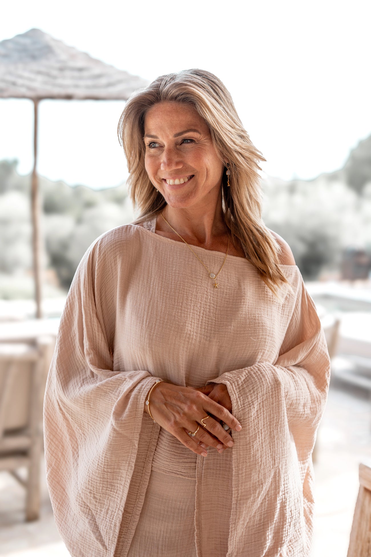 Suave, con estilo y diseñada para un día soleado: la Polvera de Lino Top Wide. en color polvo Deliciosamente suave gracias al algodón burbuja. Adecuado para todos los momentos, desde la mañana hasta el atardecer.
