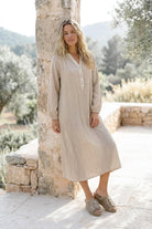 El Kaftán Largo Mavina Auralea Beige representa la ropa de verano para mujer que se siente natural, tiene un aspecto femenino y complementa cualquier día de verano sin esfuerzo.