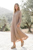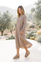 El Kaftán Largo Mavina Auralea Taupe representa la ropa de resort femenina que se siente natural y se puede llevar todos los días. Suave, femenino y diseñado para los días relajados de verano.