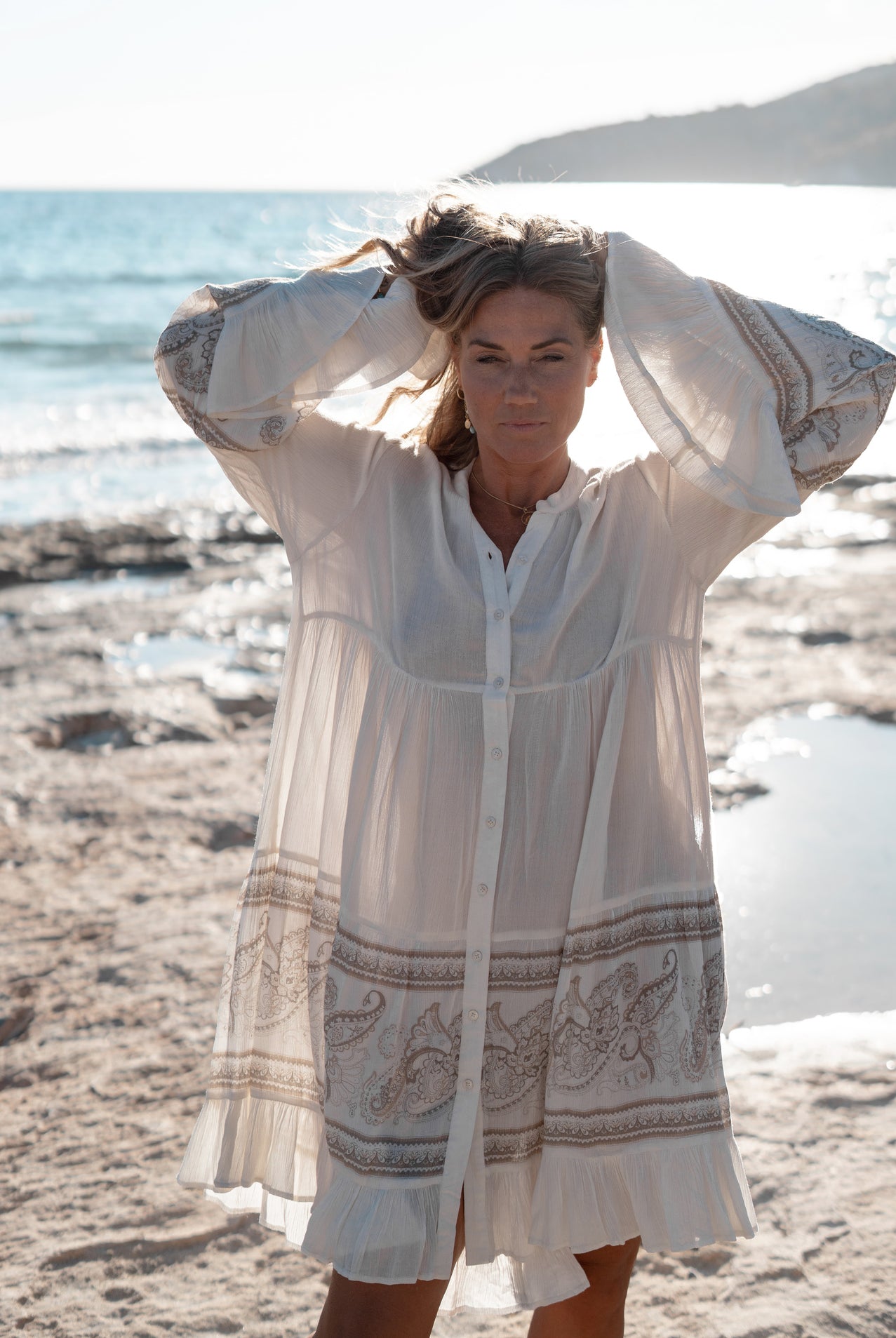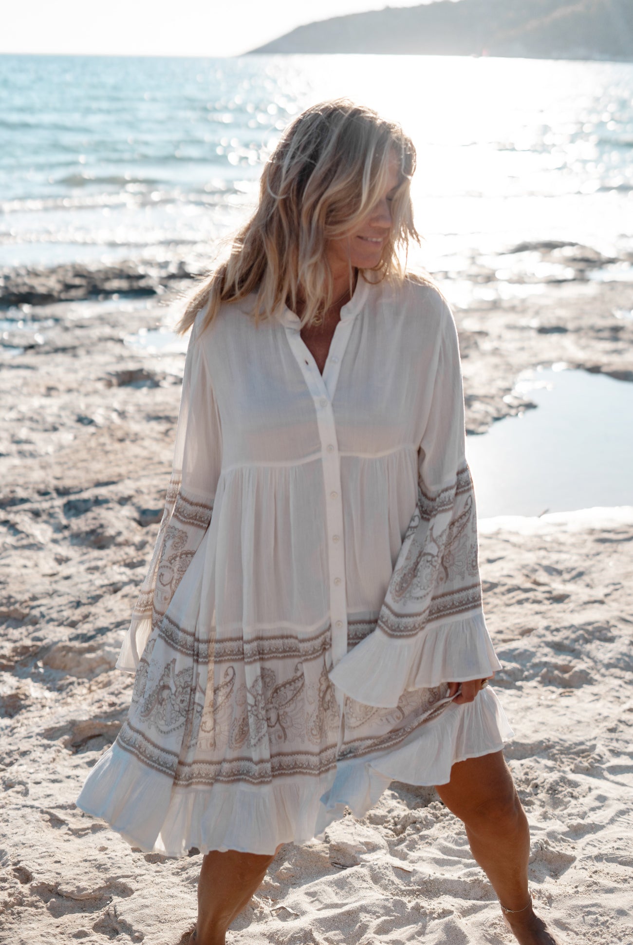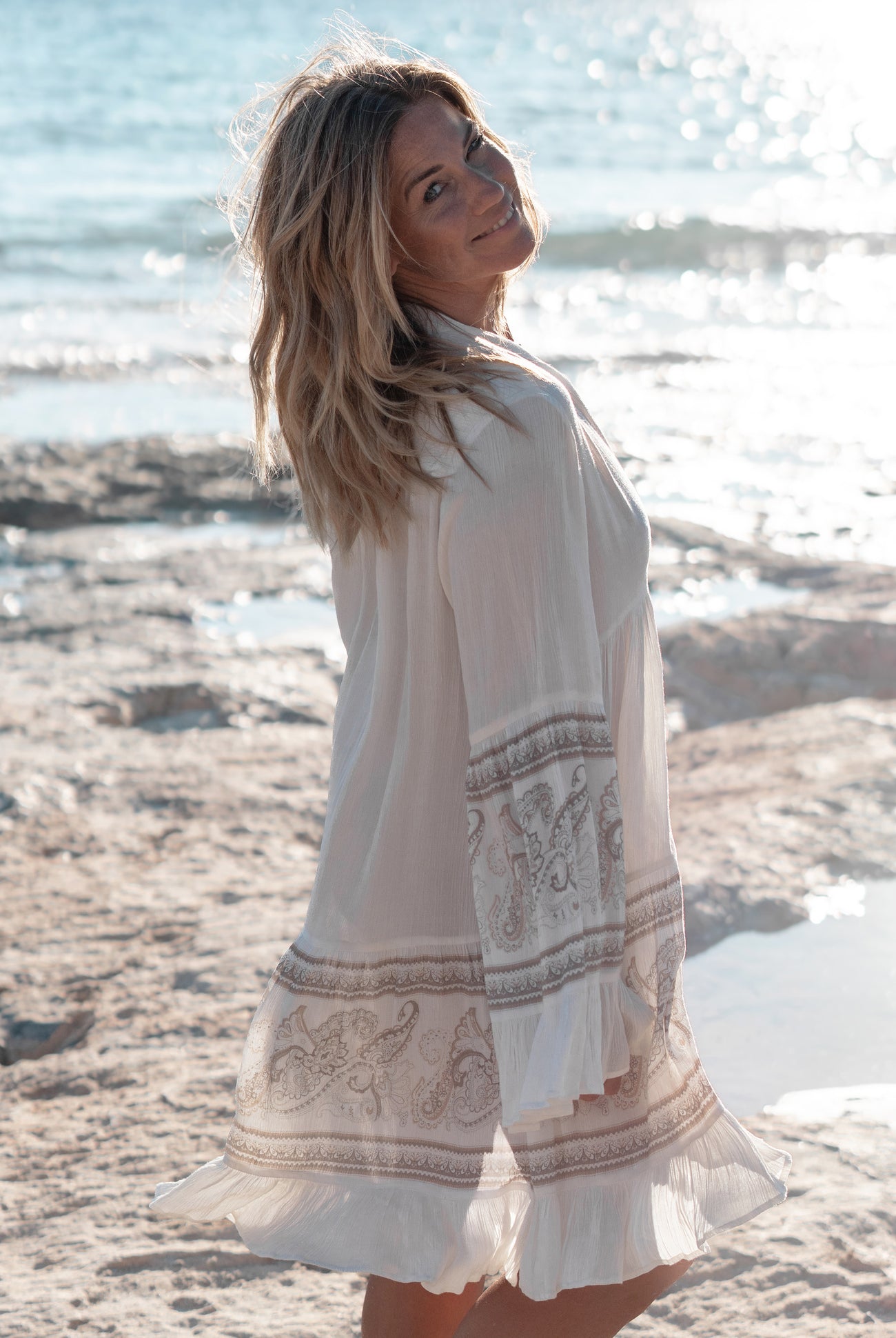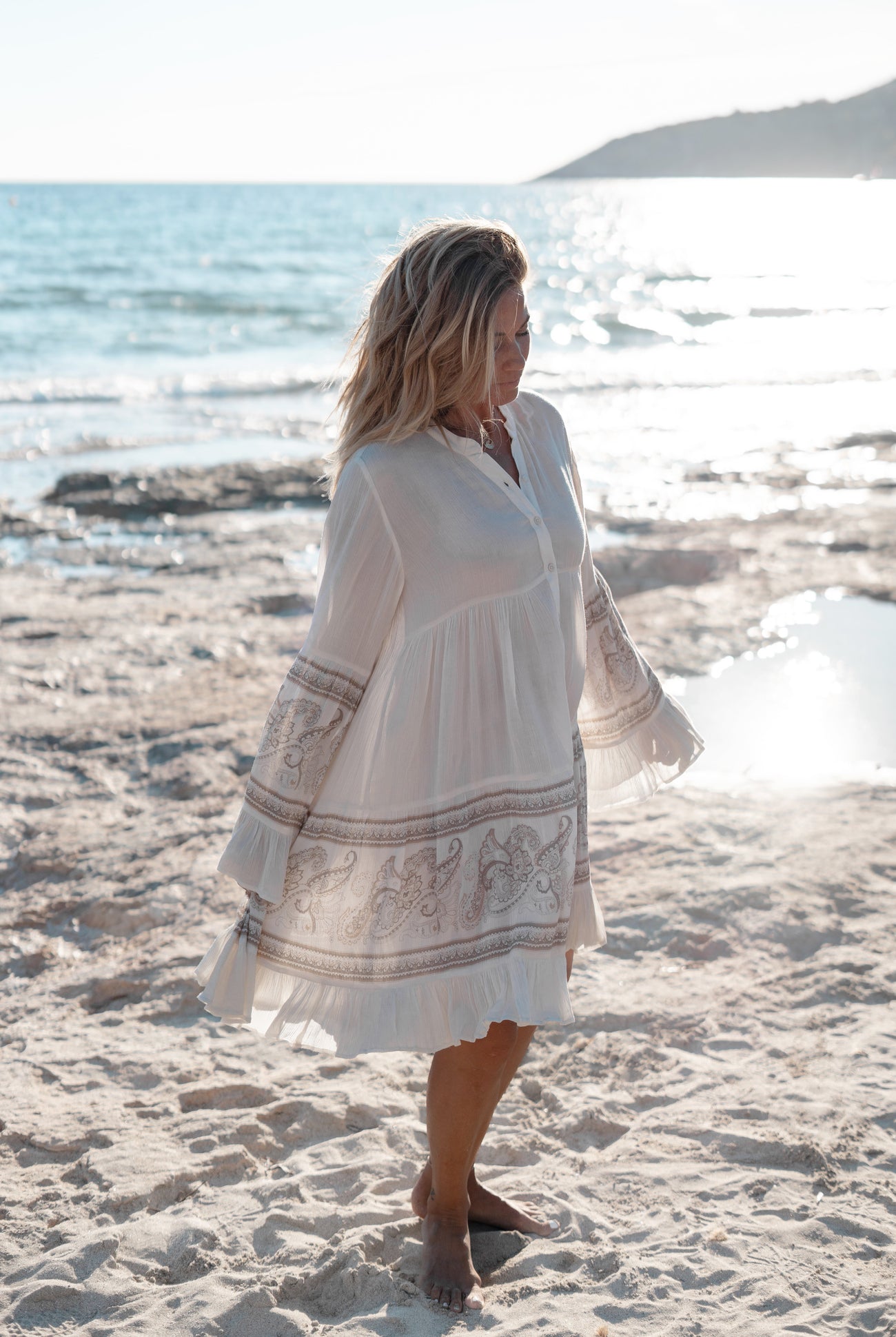 Nuestros vestidos cortos aportan la auténtica sensación ibicenca a tu armario. Estos minivestidos son vaporosos, femeninos e ideales para los días soleados. Tanto si eliges un juguetón estampado floral, un vestido con encaje o un modelo boho con volantes: cada vestido corto da a tu look un aire veraniego instantáneo. Además, puedes llevarlos fácilmente a la playa, a un festival o a un día en la ciudad. Combínalos con sandalias, botas o un cárdigan fino y tu conjunto será instantáneo. Los tejidos ligeros y el ajuste fluido garantizan comodidad y movimiento. Esto hace que te sientas libre y elegante al mismo tiempo. En resumen: con un vestido corto de moda ibicenca brillarás en cualquier momento del día.