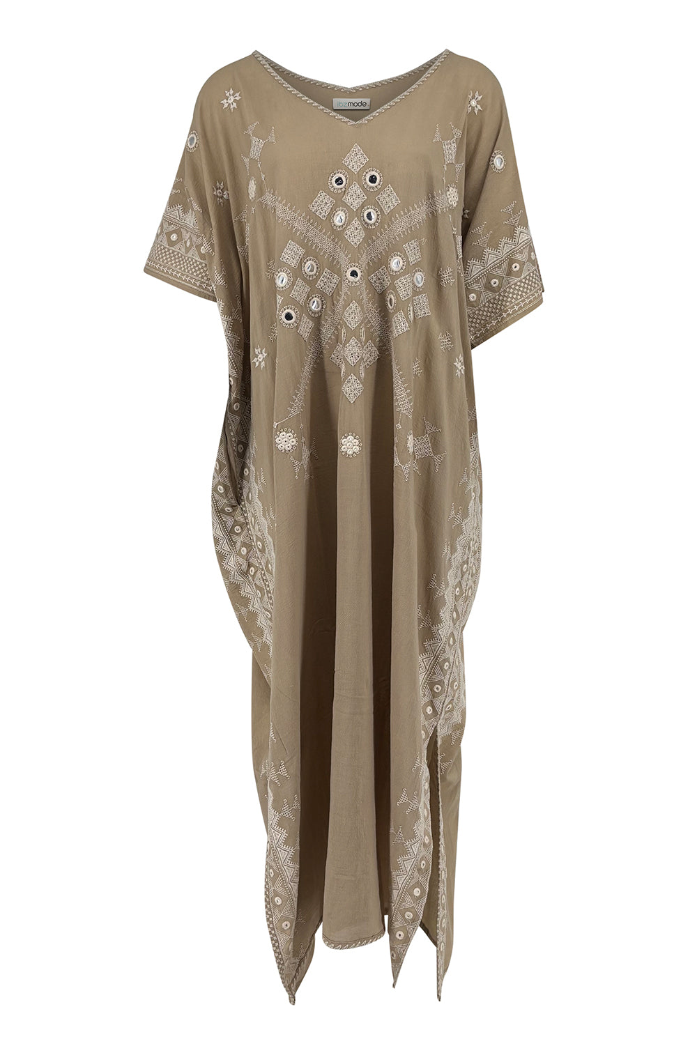 El kaftán largo Silla Sundara Light Taupe pertenece a la colección The Luxury Resort de ibizamode. Este lujoso caftán está confeccionado en algodón suave y vaporoso al tacto. El tono marfil desprende tranquilidad y sofisticación. Por eso, Silla Sundara Topo Claro se adapta perfectamente tanto a los ambientes de resort de alta gama como a los momentos relajados de Ibiza. La silueta es larga, fluida y elegante.