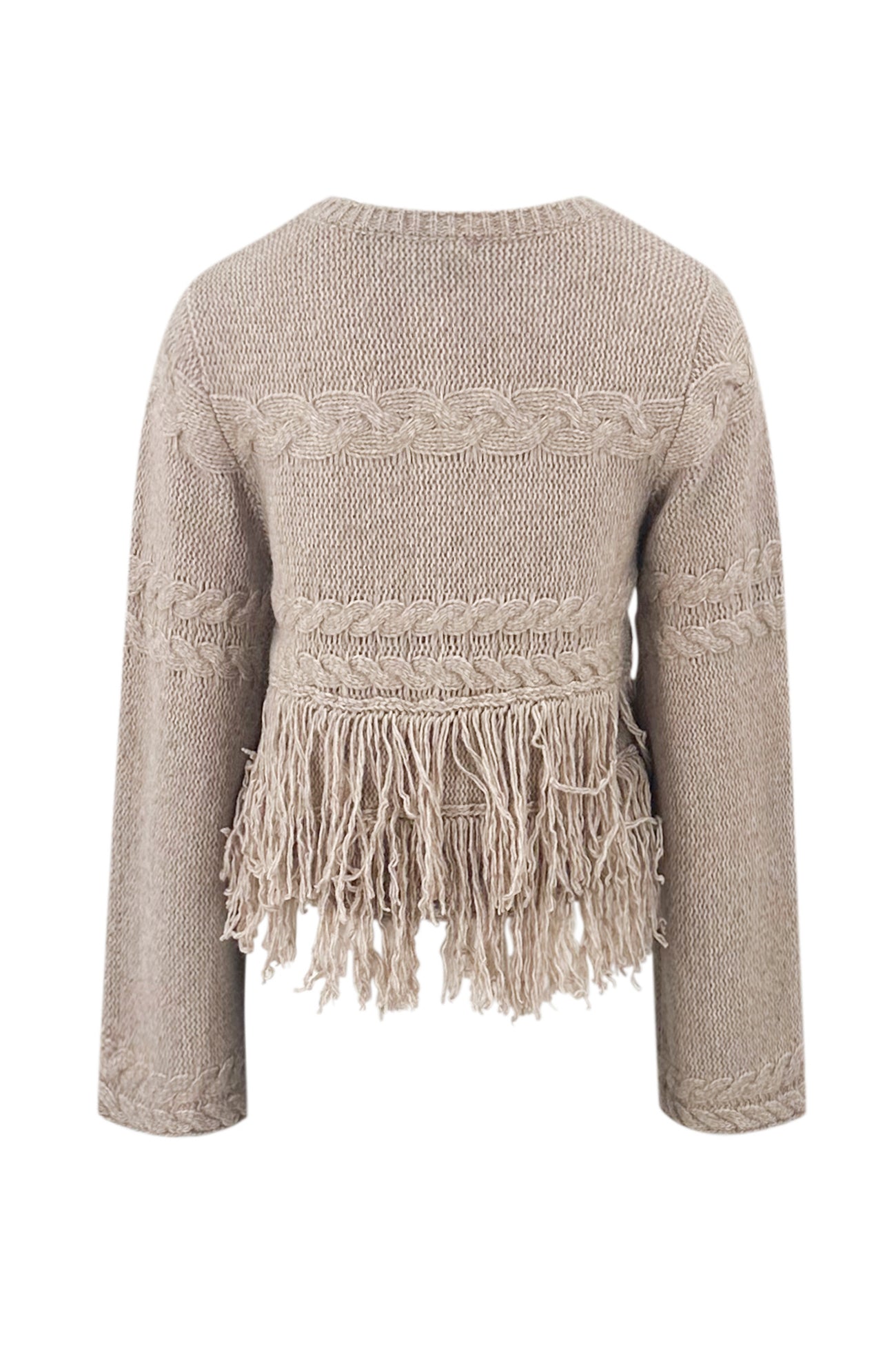 Product gegevens: Rebeca de punto fino con flecos, se cierra con botones de maderaContenido de la pestaña plegable