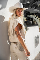 Además, este chaleco es ideal para llevar a capas. Durante el día, ponte Clara sobre un top de encaje o una prenda de ganchillo. Para la noche, combina el chaleco con un vestido o un conjunto veraniego. Así tu look cambiará sin esfuerzo. El chaleco añade actitud instantánea a cualquier conjunto.