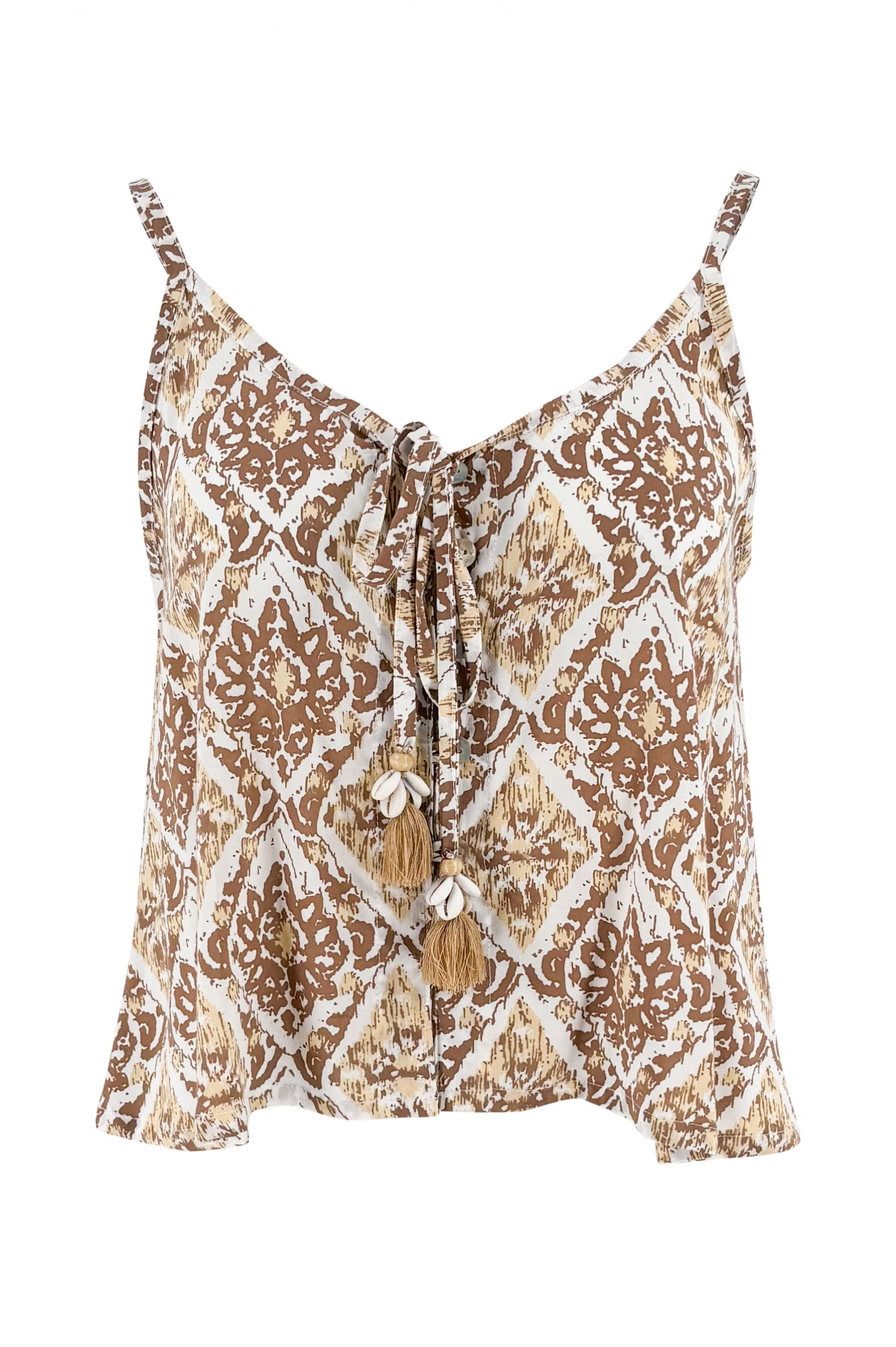Este top de tirantes con estampado natural Cloe Sun es perfecto para los días de verano: ligero, elegante y bohemio. ¡Compra tu favorito online en brands of ibiza hoy mismo!