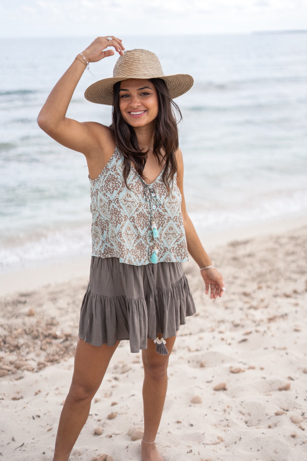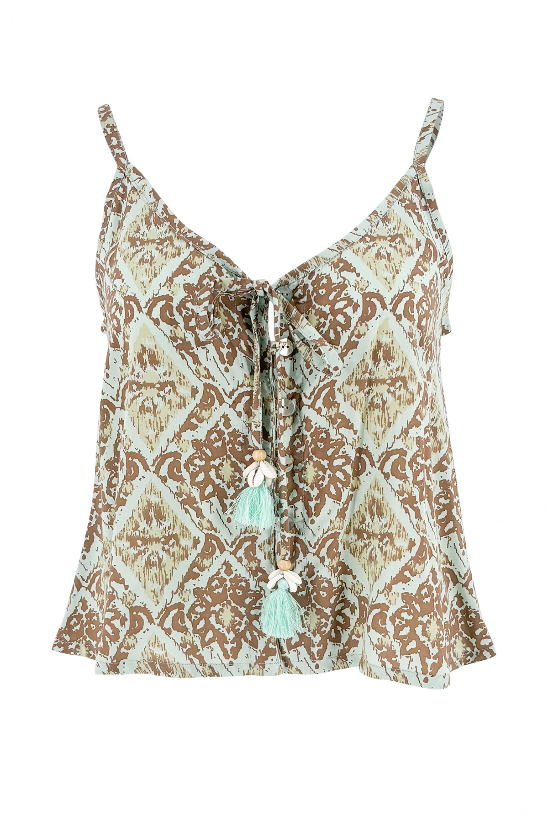 Dale a tu armario un toque bohemio con el top de tirantes con estampado cloe sun mint. ¡Compra tu favorito online en brands of ibiza hoy mismo!