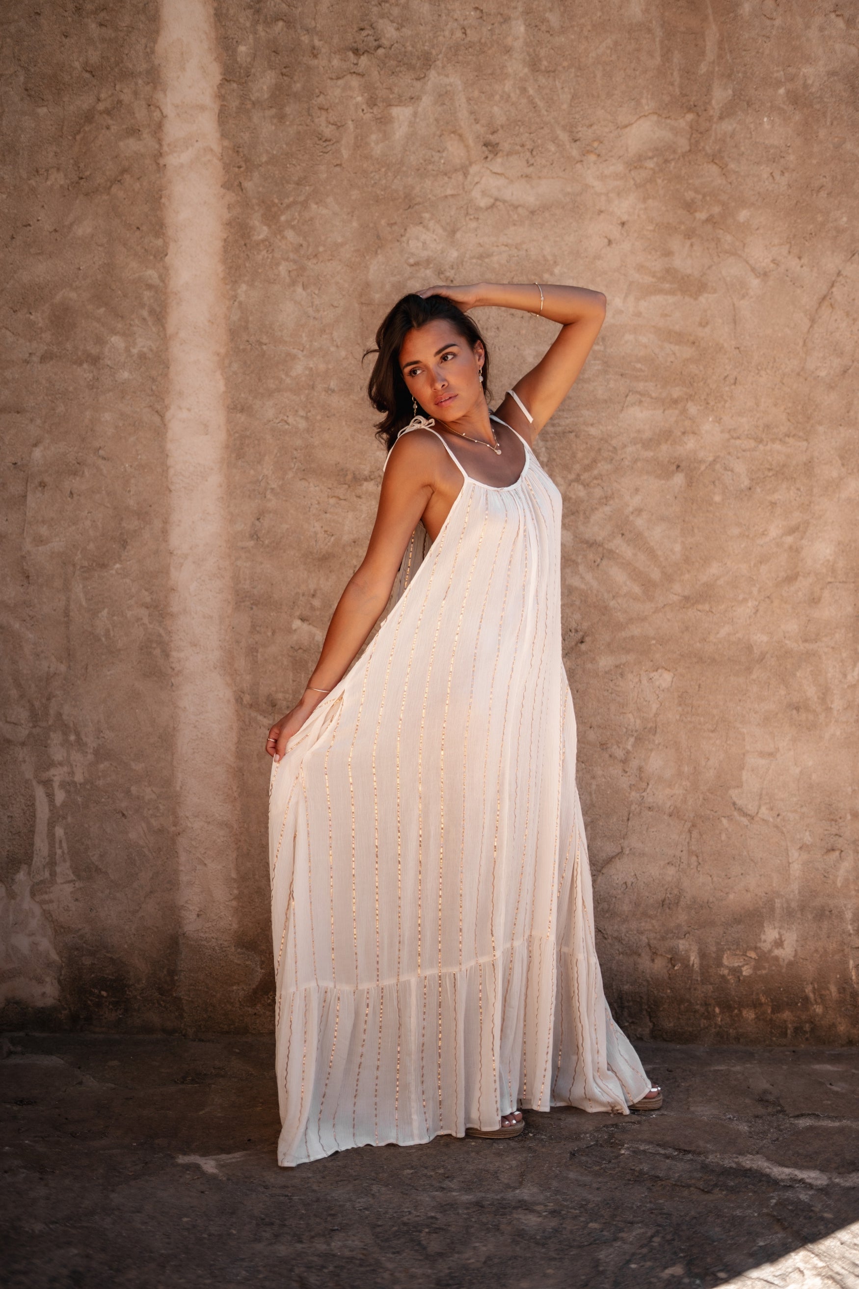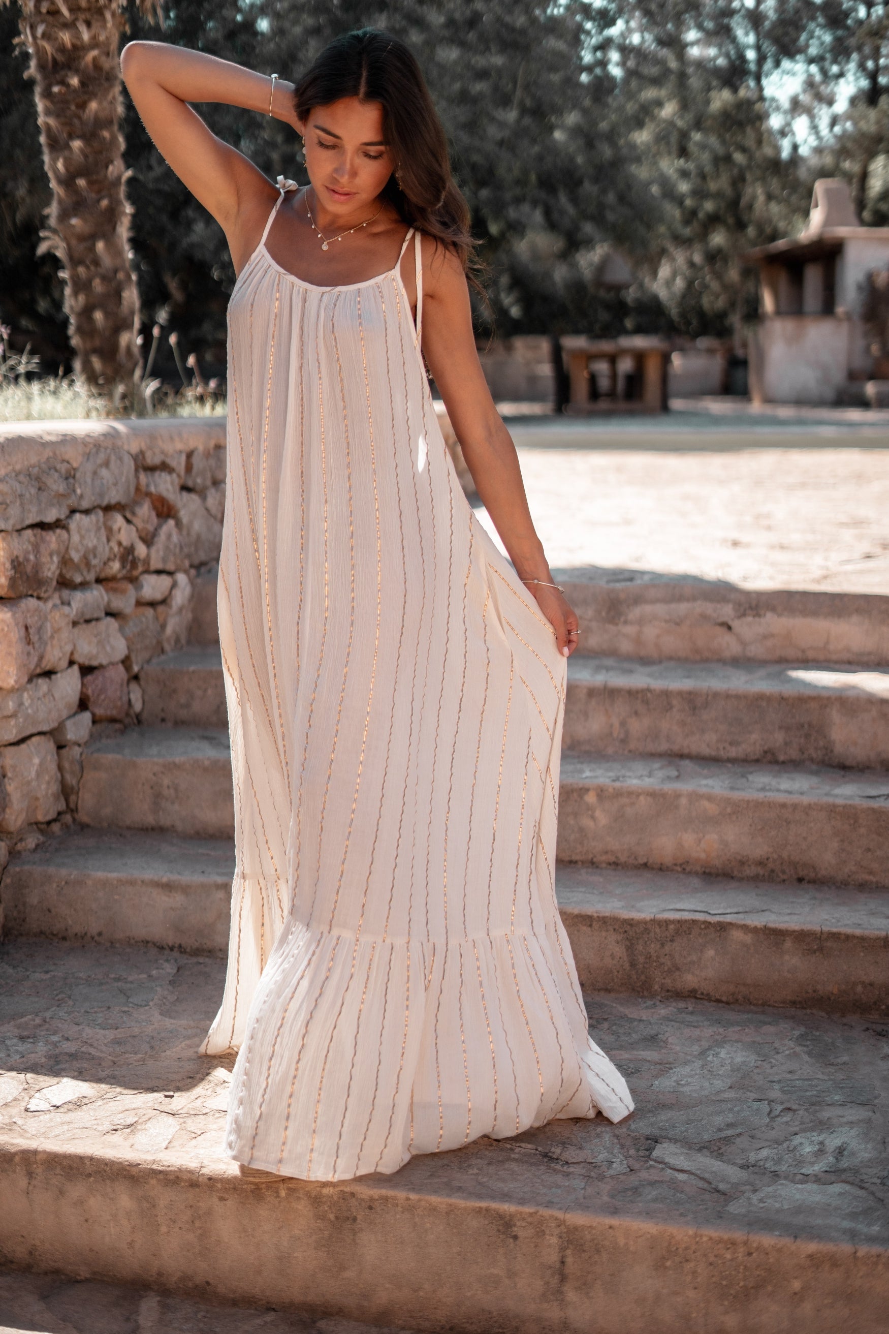 Con el Vestido de tirantes Gigi Stripe Ecru de ibZmode, estarás lista para cualquier escapada veraniega. Los tirantes se pueden anudar a voluntad, confeccionado con lúrex Hecho de 60% rayón, 40% algodón, ligero y cómodo para los días cálidos. Haz tu pedido rápidamente y disfruta del estilo de vida bohemio cada día.