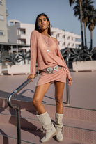 De plus, Rumi s'inscrit parfaitement dans l'esprit de Destination Pink. Des lignes robustes sont associées à des matières féminines. Les tons sourds et le blanc frais créent un contraste. Cela crée cet équilibre typique du Motel Escape entre l'audace et la bohème. Ton look se sent libre, mais toujours réfléchi.