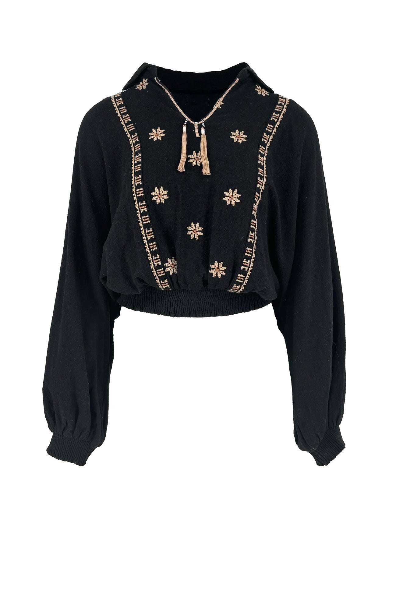 Product gegevens: Blouse met kraag en borduurwerk, gesmockt elastiek aan de onderkant en in de manchetten