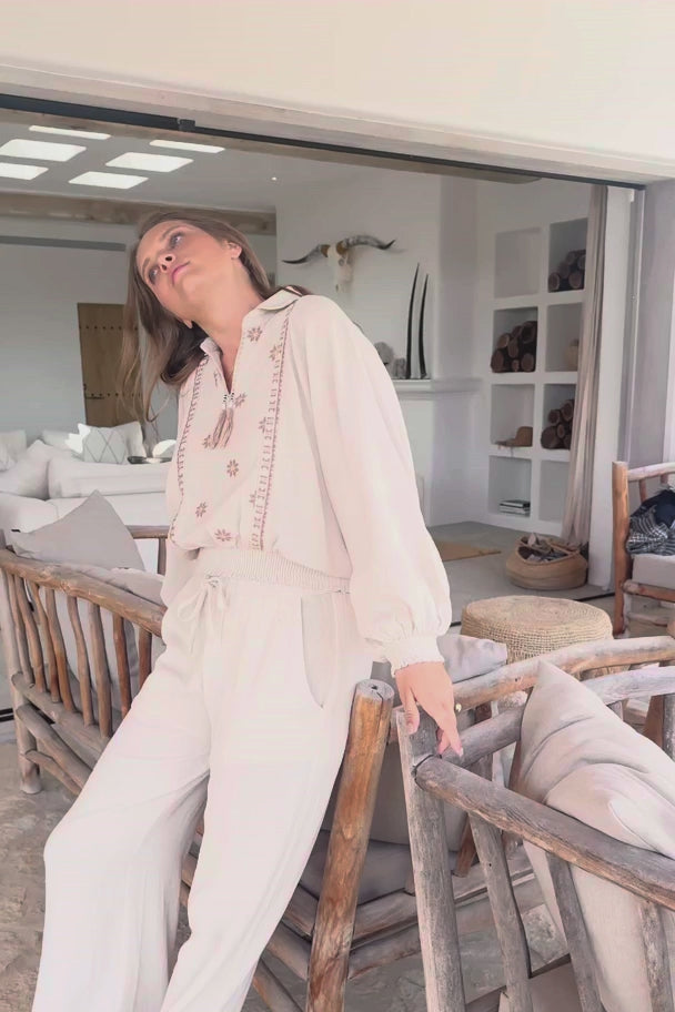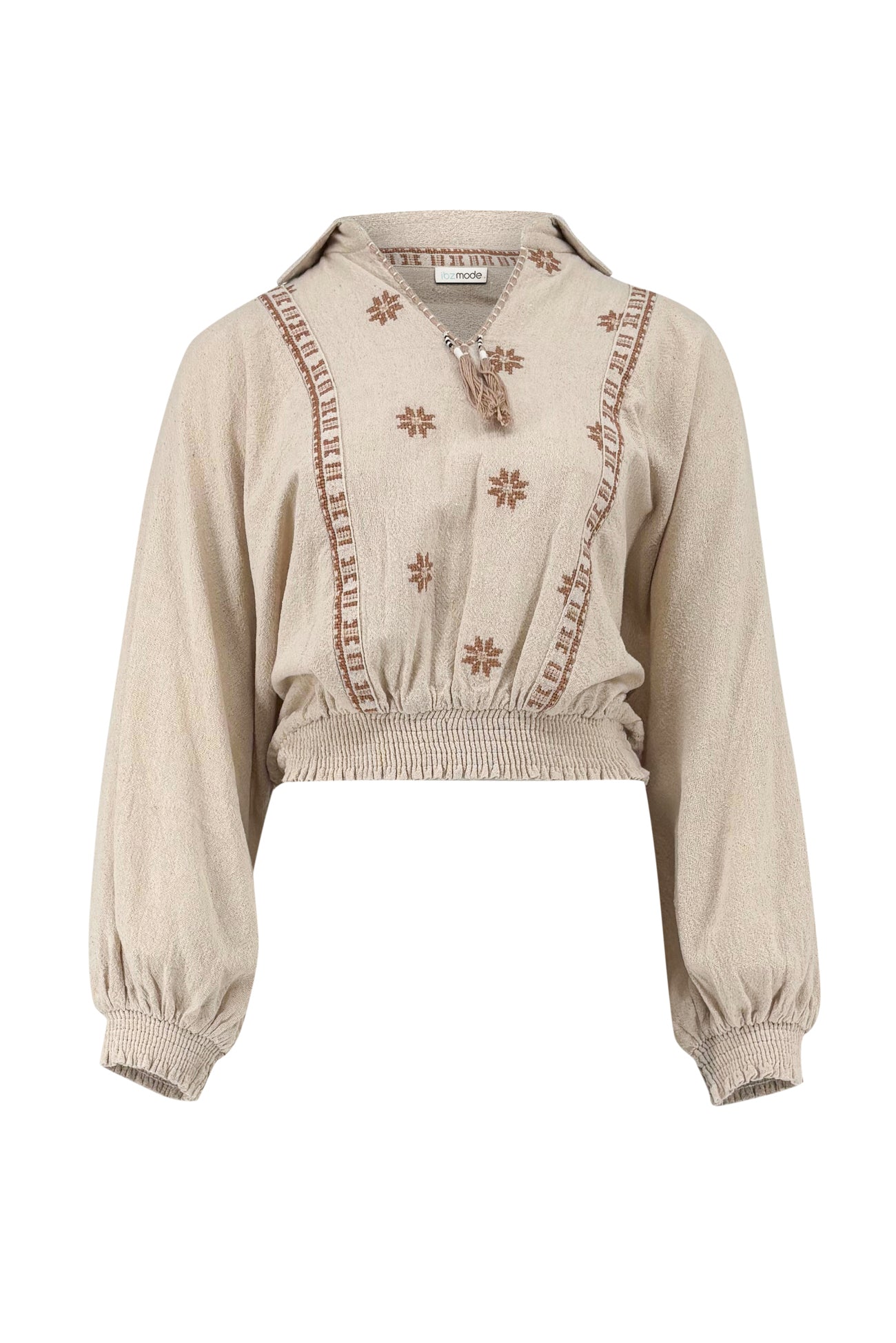 Product gegevens: Blouse met kraag en borduurwerk, gesmockt elastiek aan de onderkant en in de manchetten