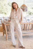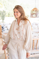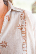 Le chemisier Lindo Dorada Ecru est un ajout élégant à ta garde-robe pour la saison automne/hiver 2025. Fabriquée dans un matériau de haute qualité, cette belle blouse a une allure élégante et intemporelle. La couleur écrue constitue une base neutre facile à combiner avec d'autres vêtements. Avec ses accents dorés, ce chemisier est parfait pour la journée comme pour la soirée. Un must-have pour toutes les femmes à la mode !