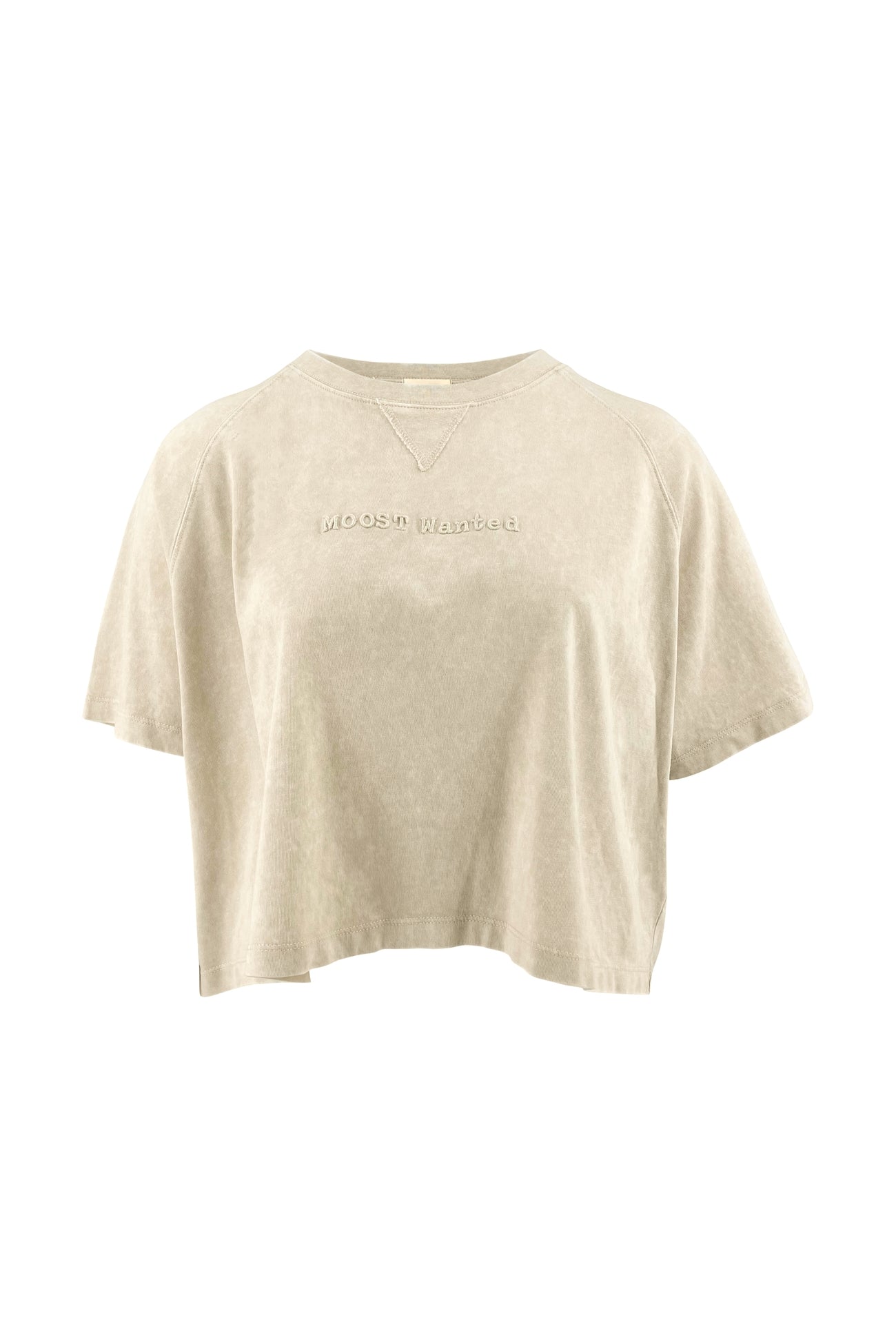 Pasvorm: Kort T-Shirt met lichte wassing, MOOST Wanted logo en ronde hals