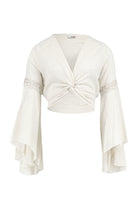 Sur le devant, Tierra Ellis est doté d'un bouton torsadé qui souligne subtilement ta taille. Le haut tombe court, il s'accorde donc bien avec une jupe taille haute, un pantalon large ou un short d'été. Les manches longues et larges avec de la dentelle donnent un look boho à la fois romantique et cool. Ce sont exactement les détails artisanaux qui rendent la collection Pure Bohemian si reconnaissable.