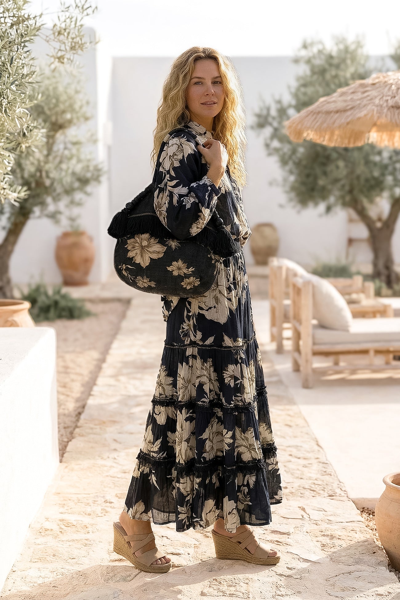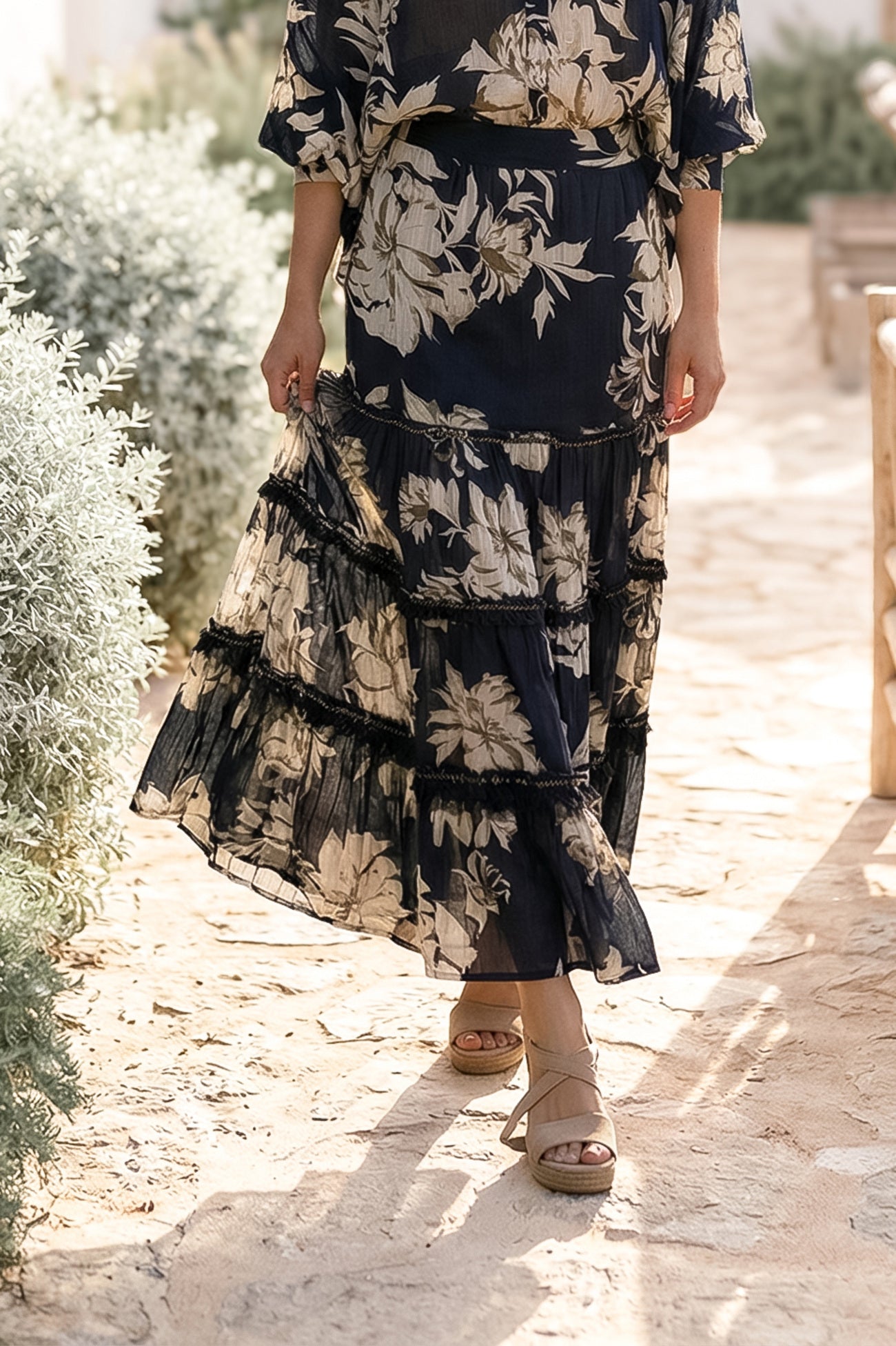 Le tissu aéré se déplace en douceur et est confortable. La taille élastiquée assure un ajustement fin, tandis que les volants superposés créent du volume et de la profondeur. La combinaison de l'imprimé et des couches donne à la jupe pour femme un look riche et boho chic.