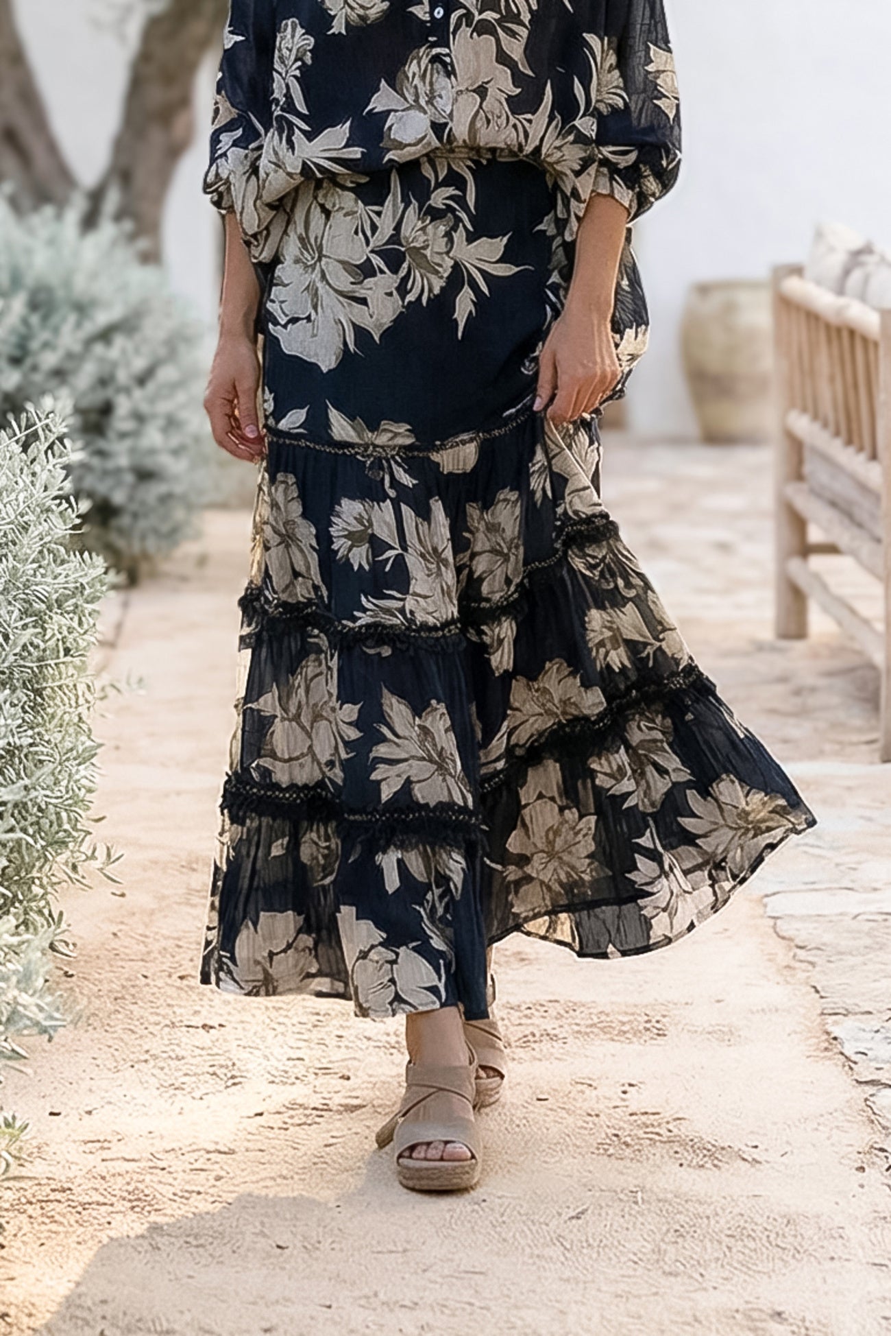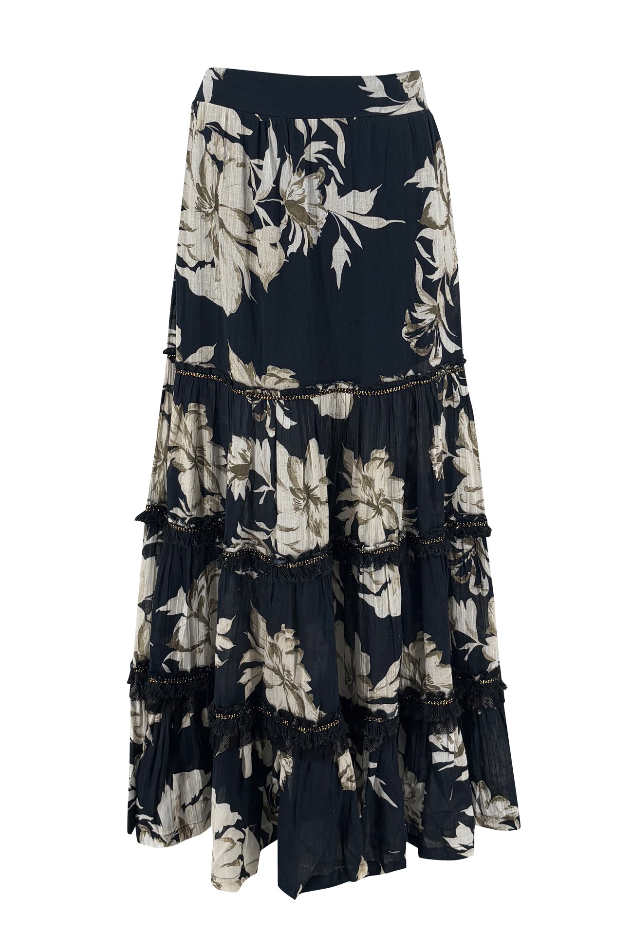 La jupe Lucia Coralia Black est une jupe pour femme puissante de la collection Bohemian Bloom. La base sombre combinée à l'imprimé floral romantique crée un look distinct mais élégant. Cette jupe pour femme apporte du contraste à la collection et donne du caractère à n'importe quelle tenue.