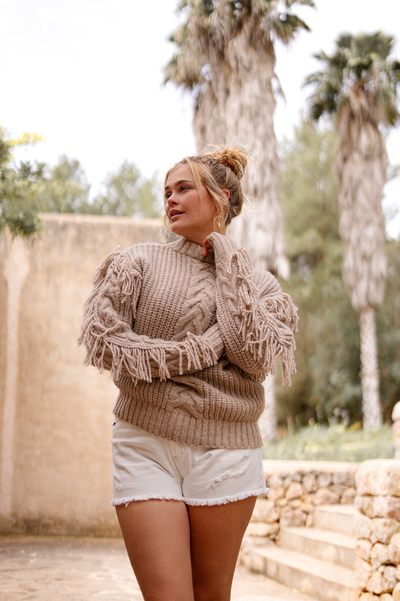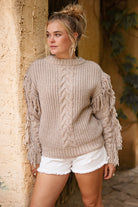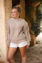 Crée ton look d'été ultime avec le pull Fringe Dago Taupe de couleur taupe. Pull en câble à col montant, façonné avec des franges Porte-le avec tes accessoires préférés pour un vrai look de marque ou d'Ibiza. Ajoute cet indispensable à ta garde-robe d'été.