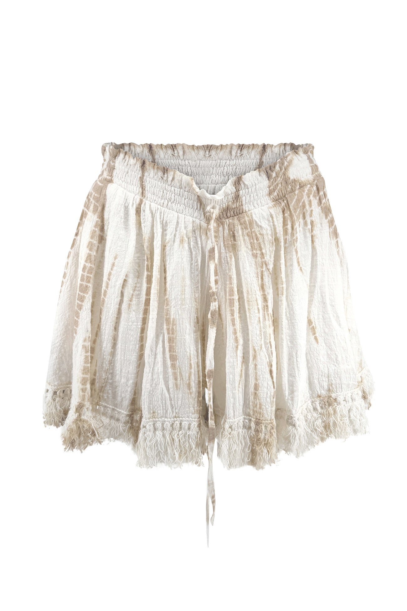 Le short Raina Sera fait partie de la collection Sand Stories. Ce short en coton est conçu pour les journées d'été décontractées où le confort est primordial. L'imprimé tie-dye organique en taupe doux et ivoire frais donne au short un aspect calme et luxueux. Par conséquent, cet article s'intègre instantanément dans un look de villégiature sans effort.