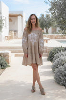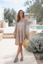 Crée ton look d'été ultime avec la tunique Elena Bordado de couleur taupe clair. Comporte une bande élastique autour des épaules, une épaule décolletée, des détails brodés sur le devant et le Porte-la avec tes accessoires préférés pour un véritable look des marques d'Ibiza. Commande rapidement et profite du style de vie bohème au quotidien.
