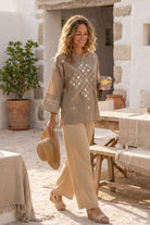 Crée ton look d'été ultime avec le pantalon Agar Bordado Sand de couleur sable. Le pantalon aéré, avec des poches latérales, a une taille élastiquée Le tissu aéré est doux sur la peau. Continue à faire venir l'été - tu es prêt pour lui.