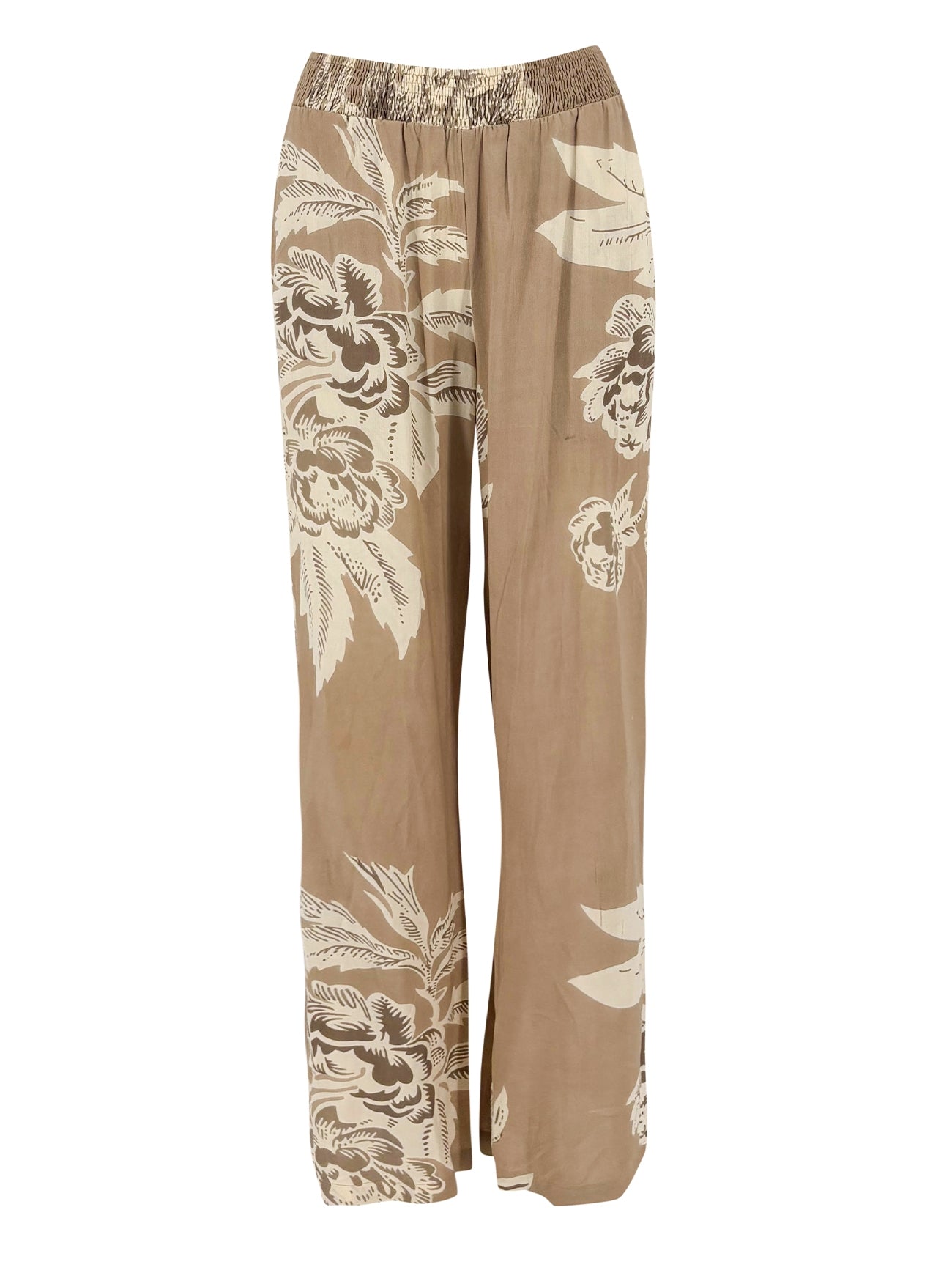 Product gegevens: Pantalon met bloemendessin, elastische band in de heupen en heeft steekzakken