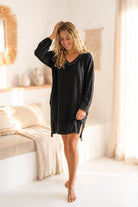 Reste au chaud tout en ayant du style avec la robe pull Chavela Suave Black. Cette robe tendance est parfaite pour l'automne/hiver 2025. Fabriquée à partir de matériaux doux et dotée d'une coupe confortable, tu seras sûre d'être belle et à l'aise. La couleur noire permet de la combiner facilement avec d'autres vêtements et accessoires. Ajoute cette jolie robe à ta garde-robe pour un look chic et sans effort.
