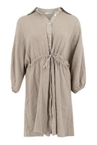 Product gegevens: Robe avec col et fermeture à boutons, larges manches élastiques, cordon de serrage à la taille qui peut être resserré selon les besoins. VEUILLEZ NOTER : Il s'agit de la robe de couleur taupe de la photo du produit !