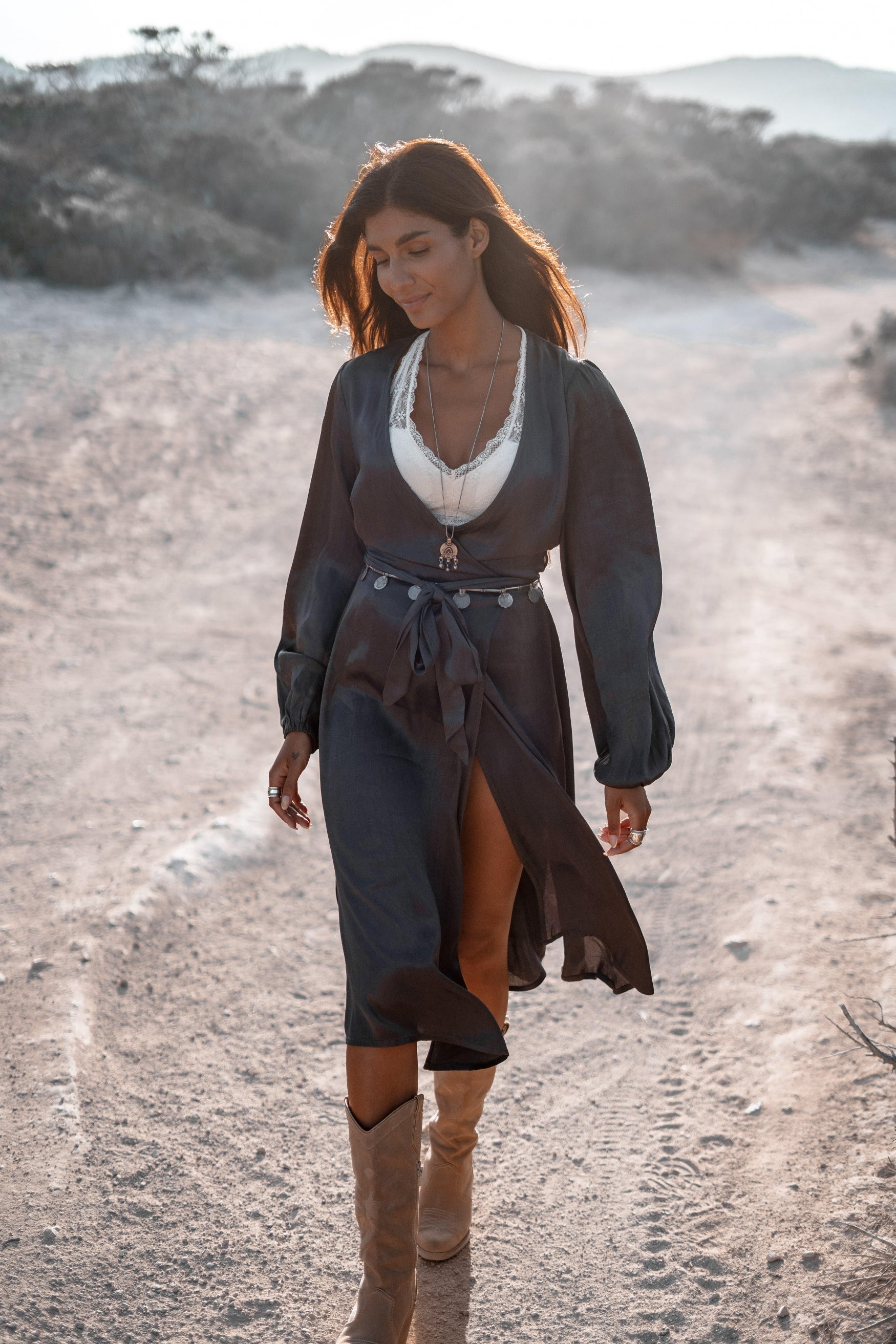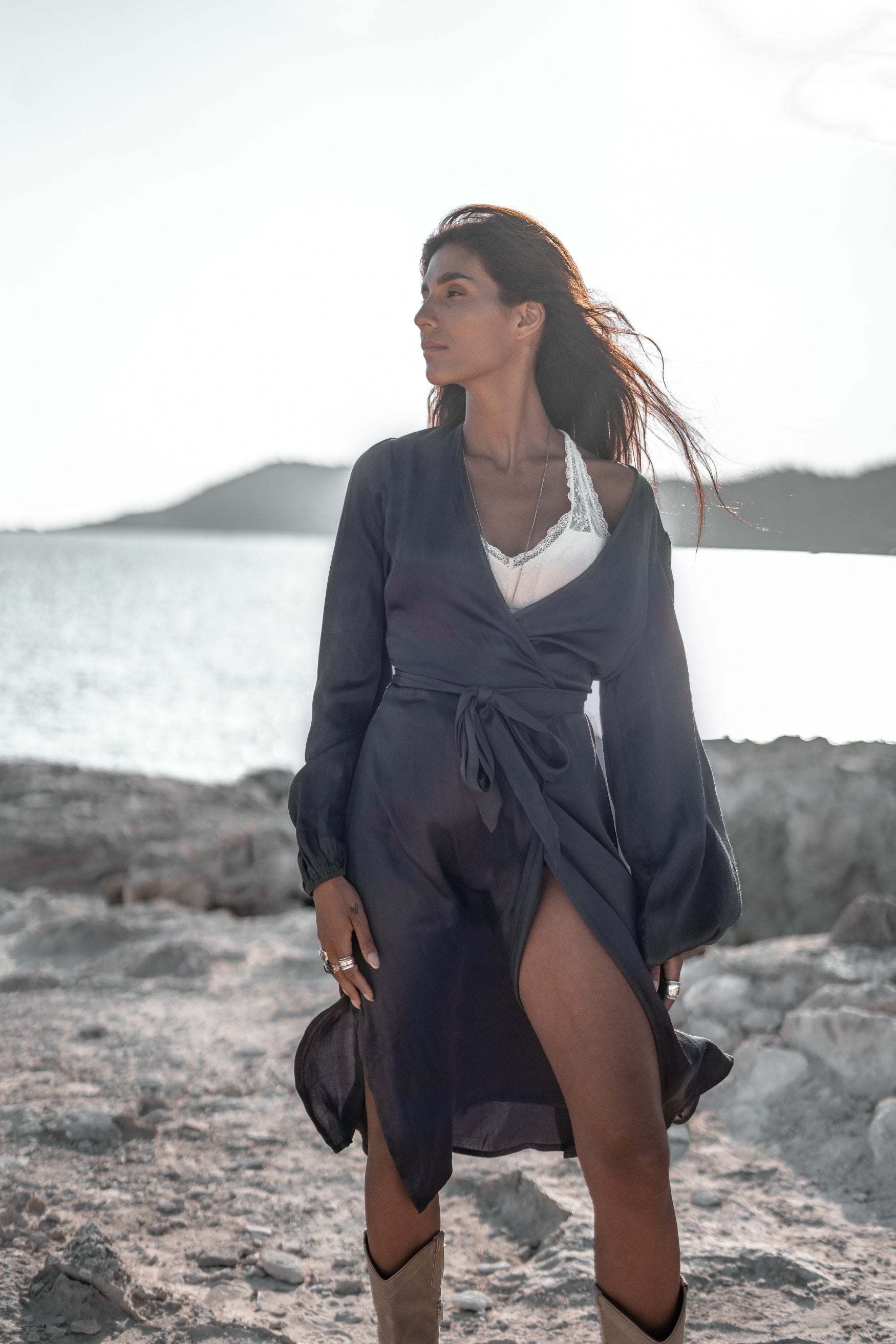 Crée ton look estival ultime avec la robe midi en satin Noor de couleur bleu foncé. Fabriquée en 100 % viscose, elle est légère et confortable pour les journées chaudes. Continue à faire venir l'été - tu es prête pour lui.